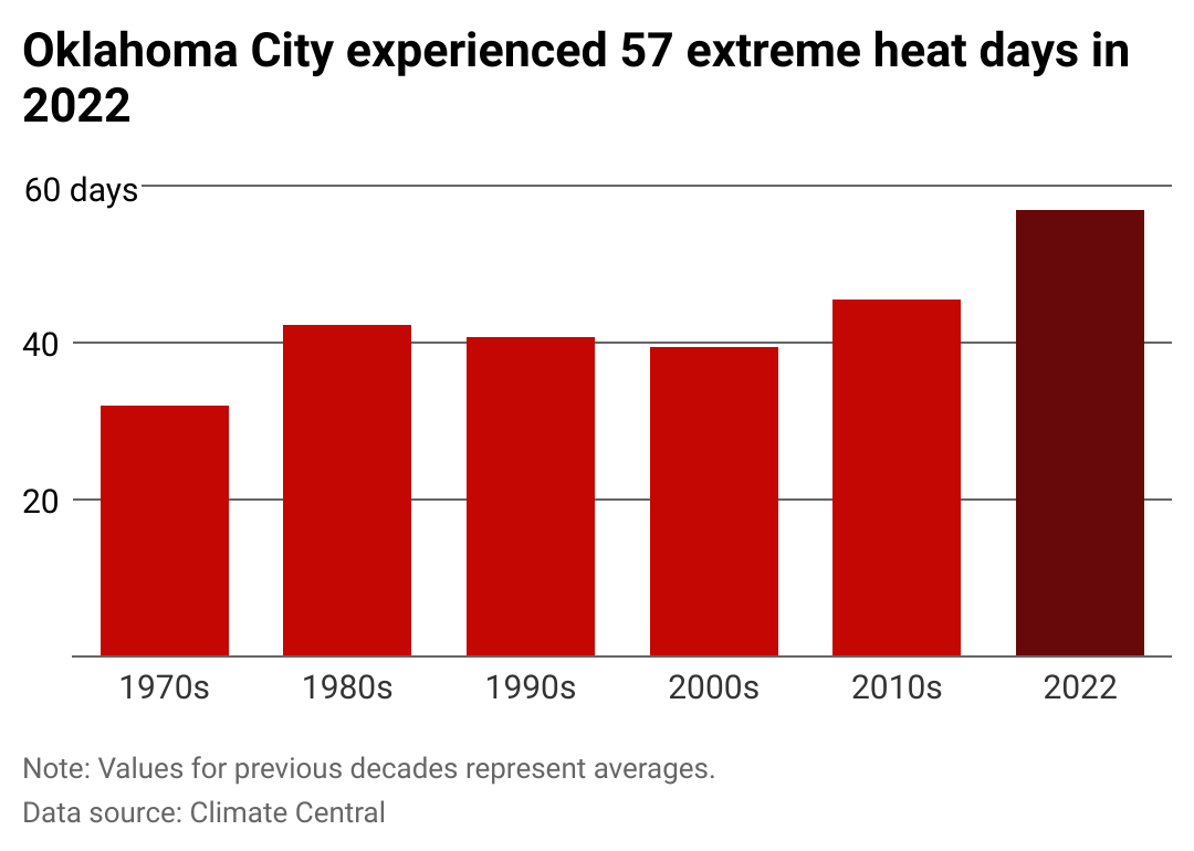 Read on to see how 2022's extreme heat days in Oklahoma City, Oklahoma compare to previous years.