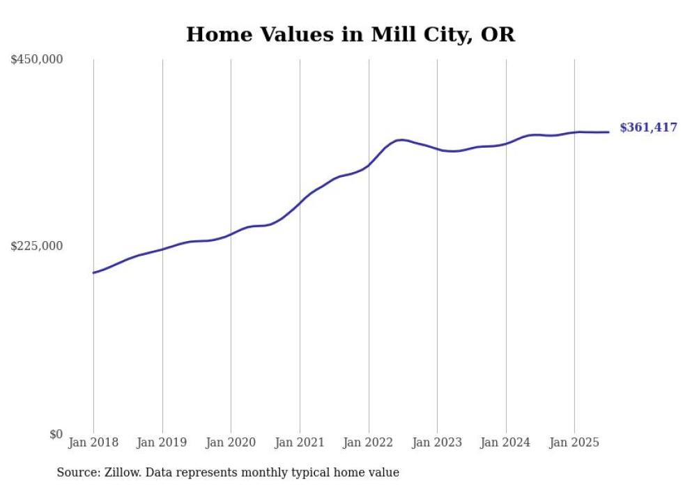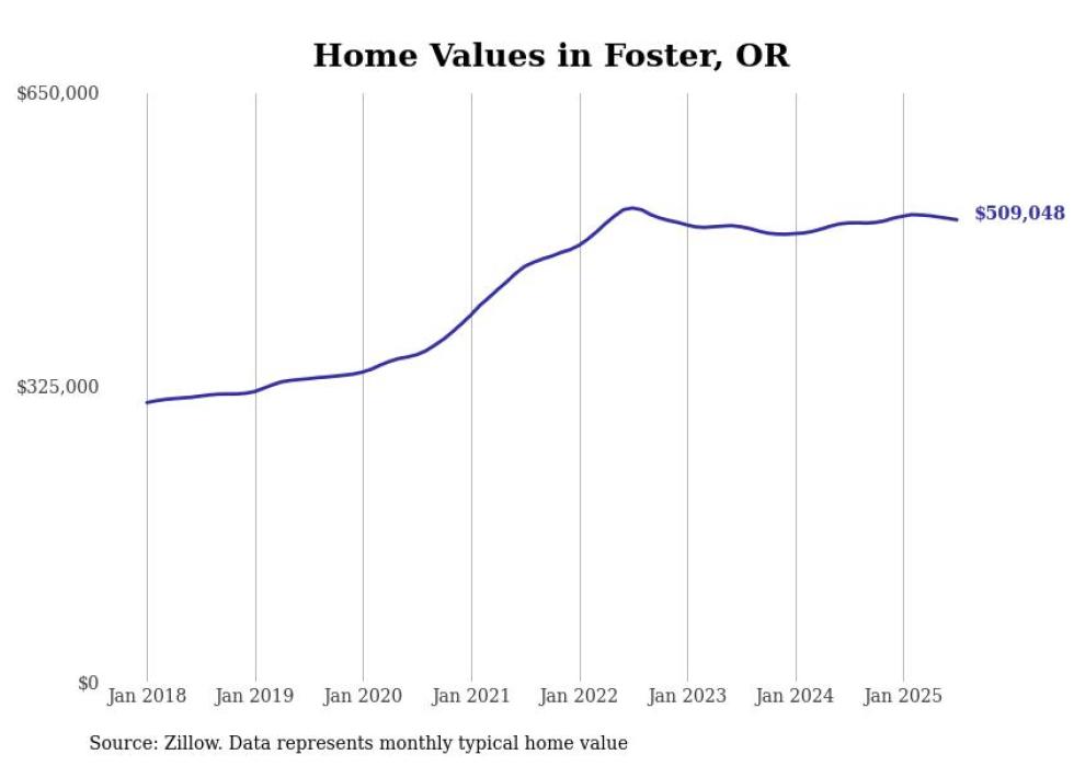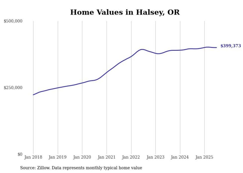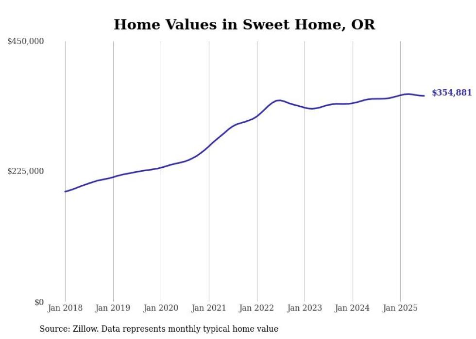 Stacker compiled a list of cities with the most expensive homes in the Albany, Oregon metro area using data from Zillow. Charts show the monthly typical home value since January 2018. All 14 cities and towns with data available were included in the list.