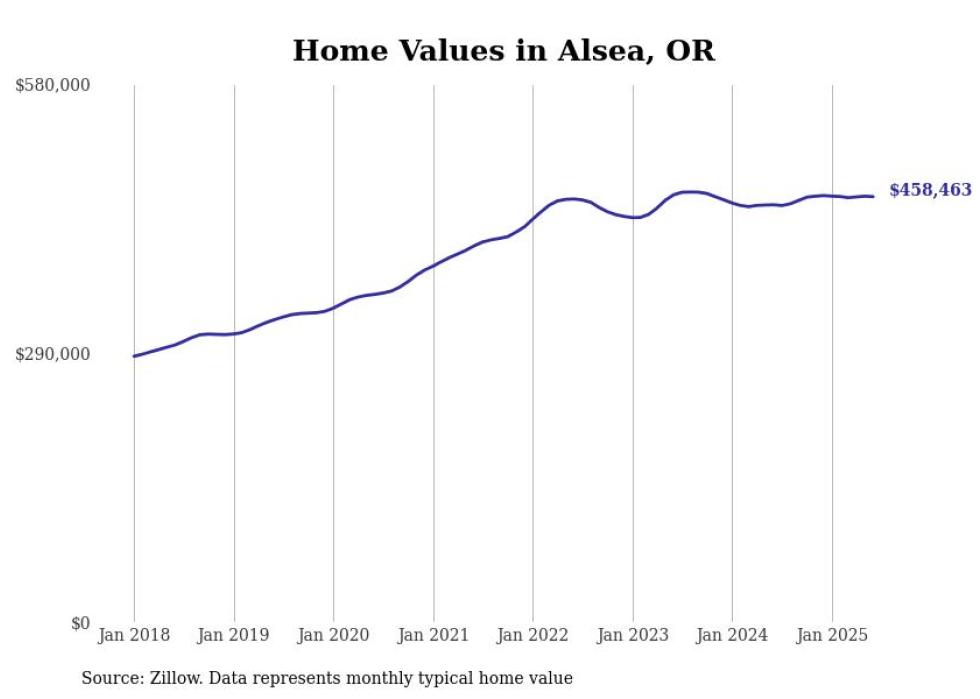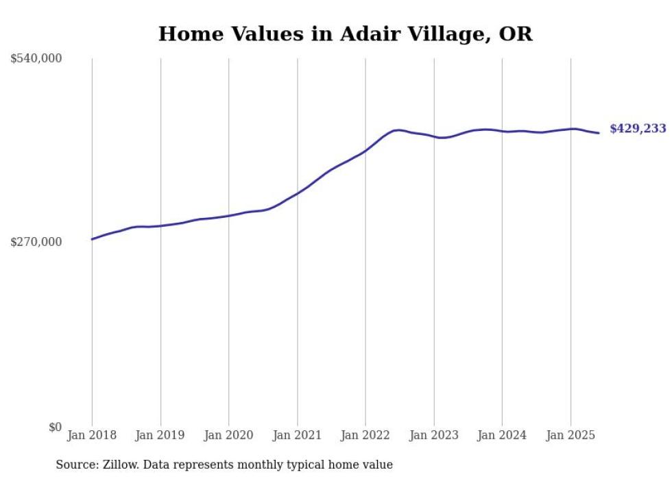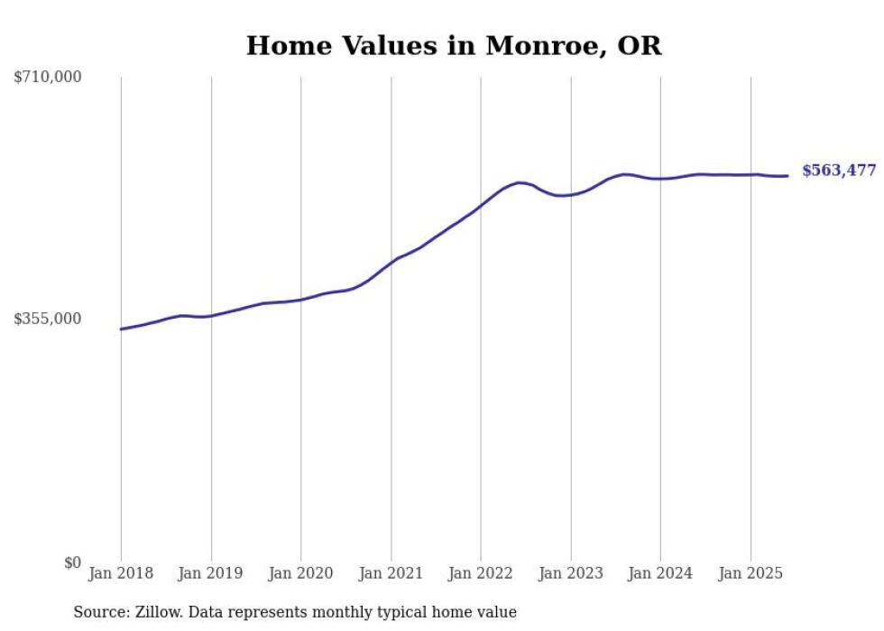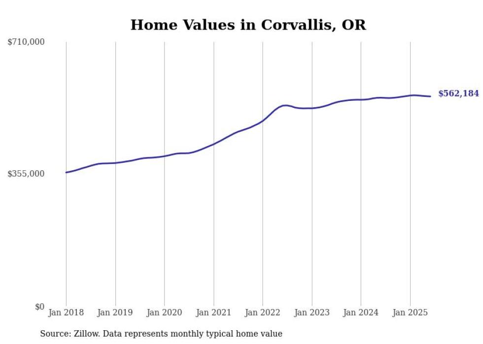 Stacker compiled a list of cities with the most expensive homes in the Corvallis, OR metro area using data from Zillow. Charts show the monthly typical home value since January 2018.