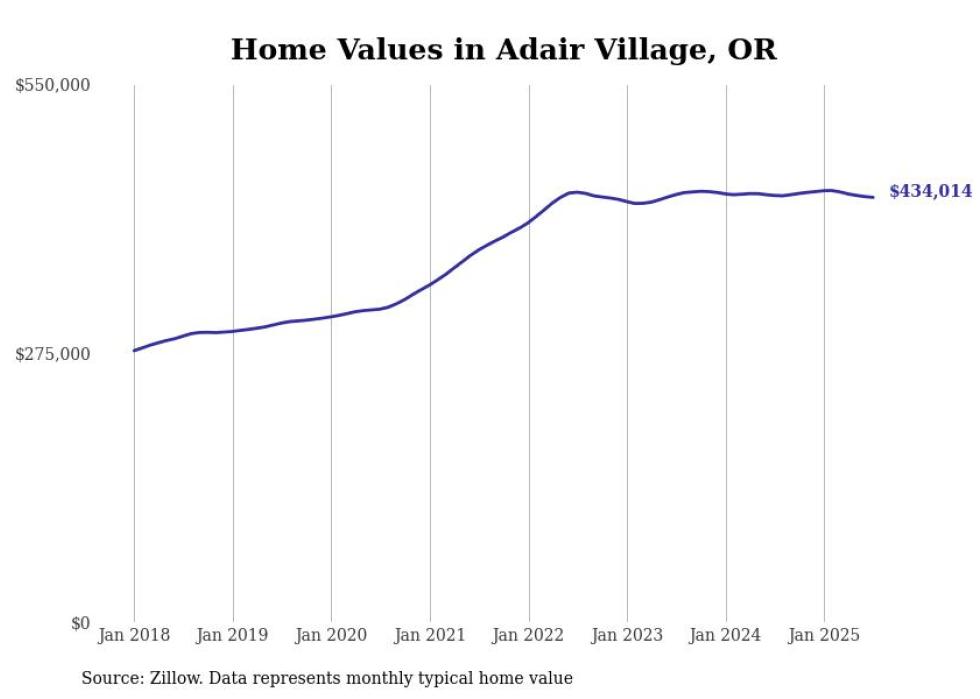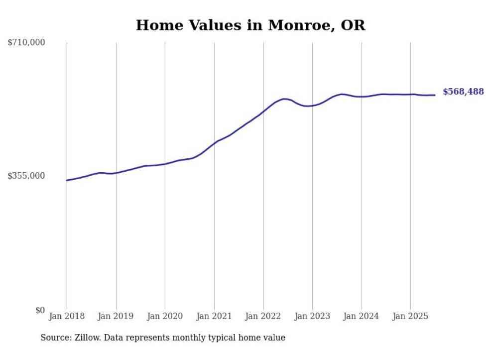 Stacker compiled a list of cities with the most expensive homes in the Corvallis metro area using data from Zillow. Charts show the monthly typical home value since January 2018. All 5 cities and towns with data available were included in the list.