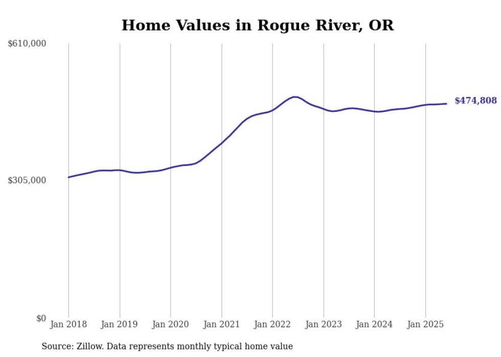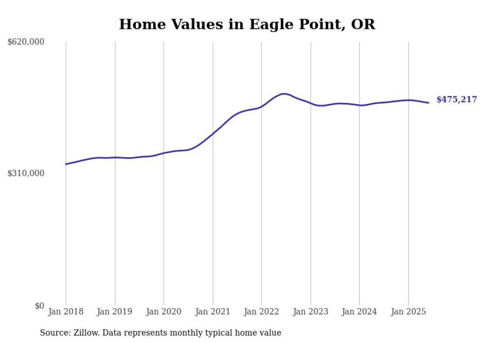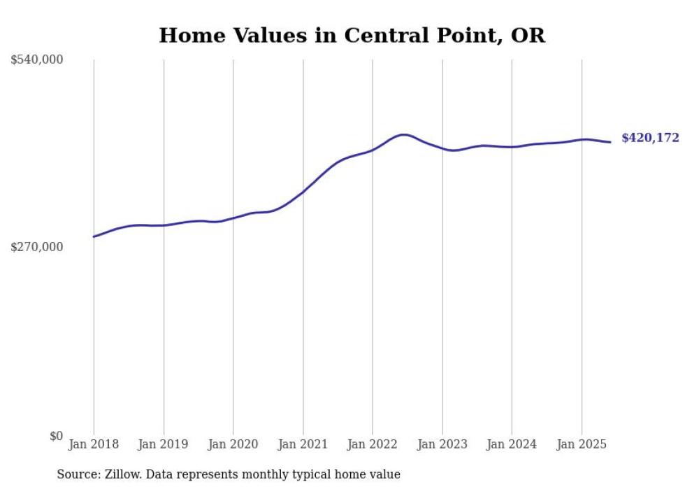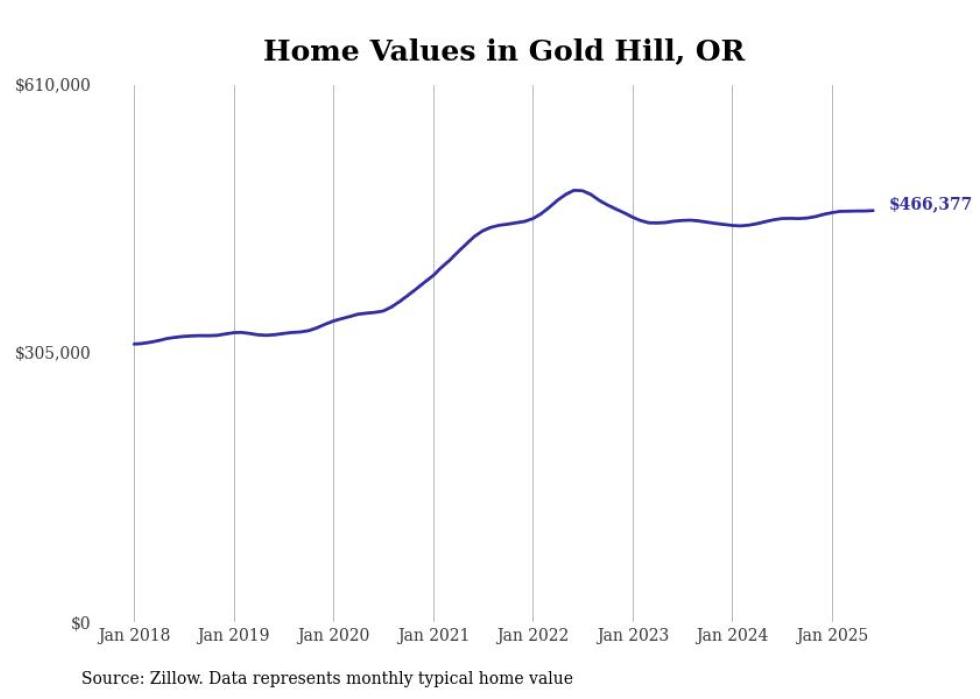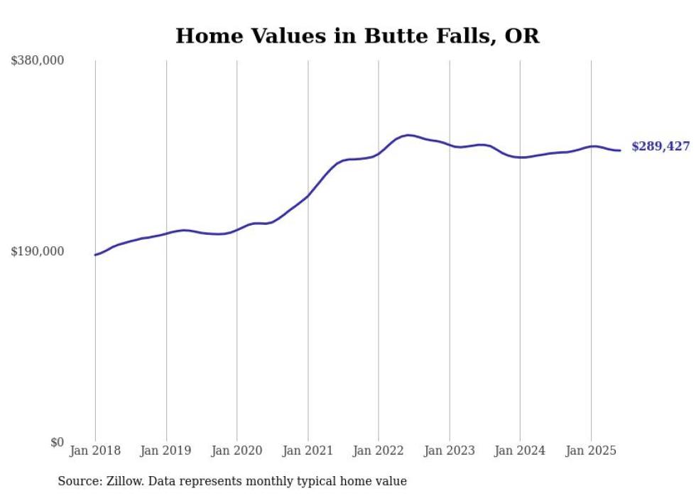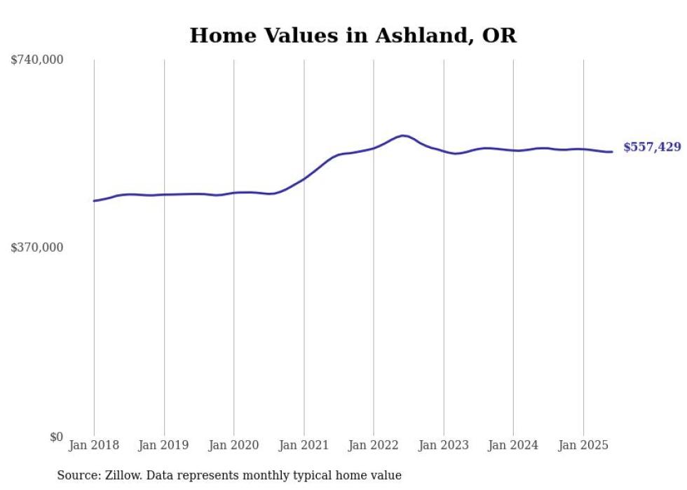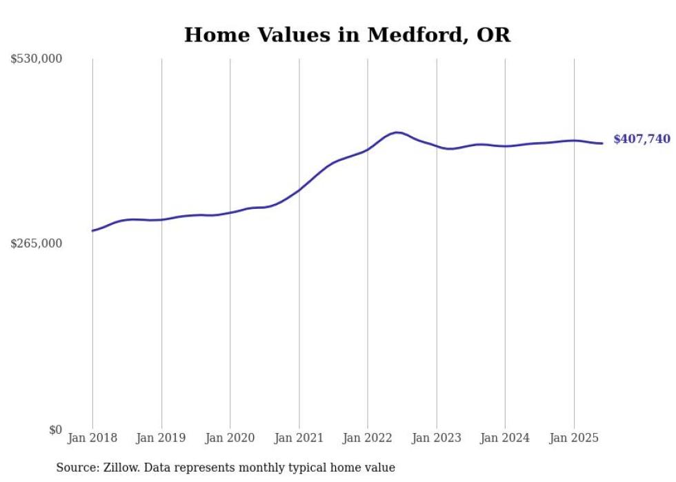 Stacker compiled a list of cities with the most expensive homes in the Medford, OR metro area using data from Zillow. Charts show the monthly typical home value since January 2018.