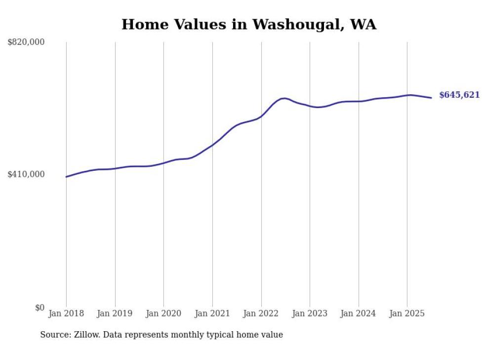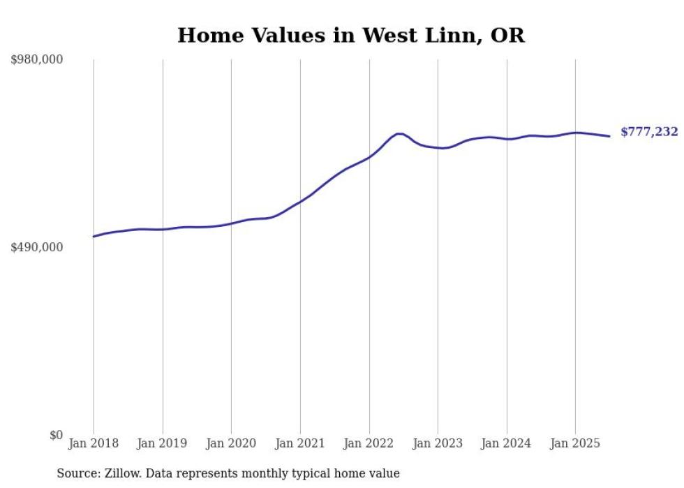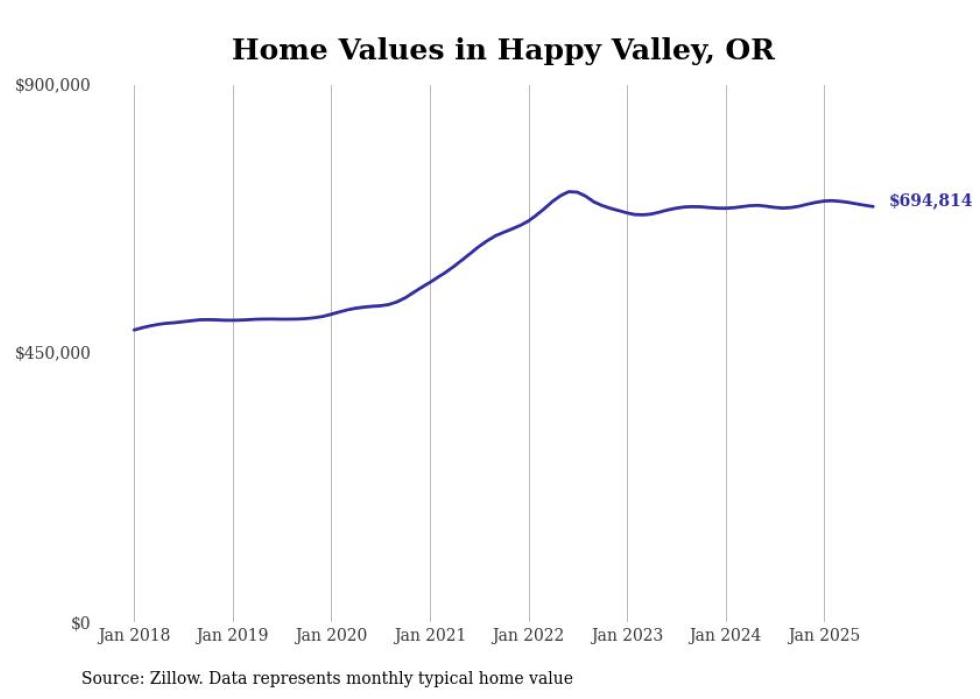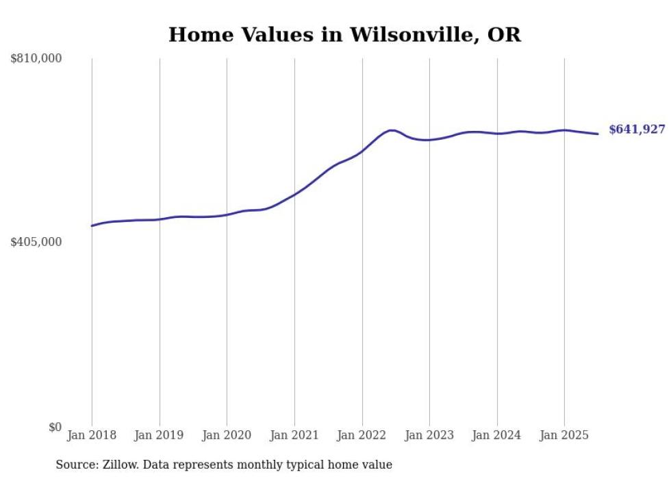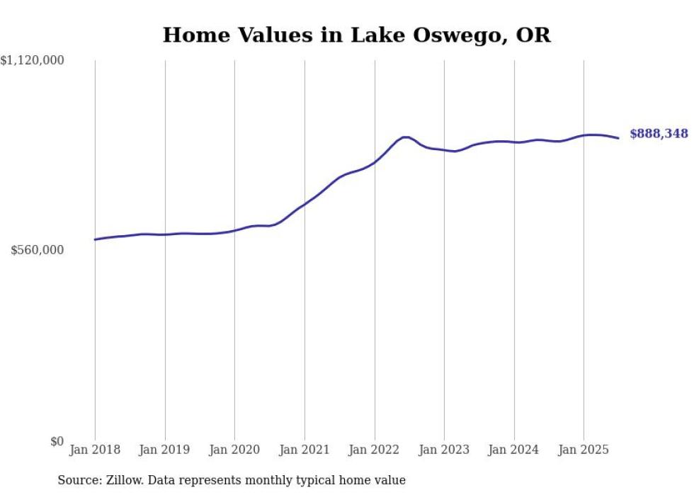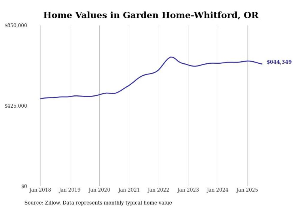 Stacker compiled a list of cities with the most expensive homes in the Portland, Oregon metro area using data from Zillow. Charts show the monthly typical home value since January 2018. Data was available for 80 cities and towns.