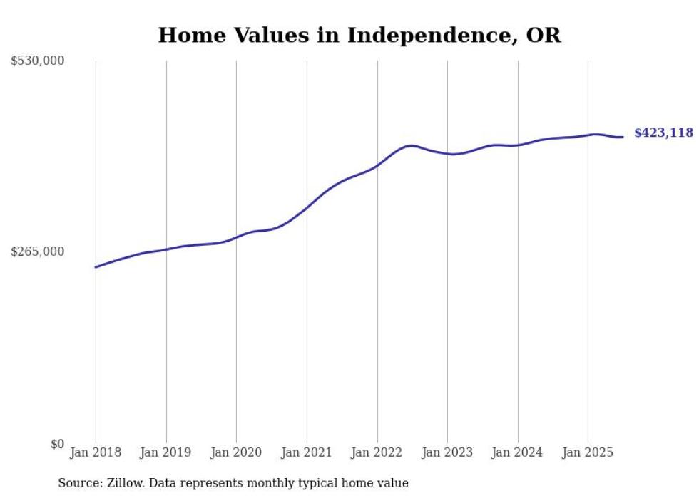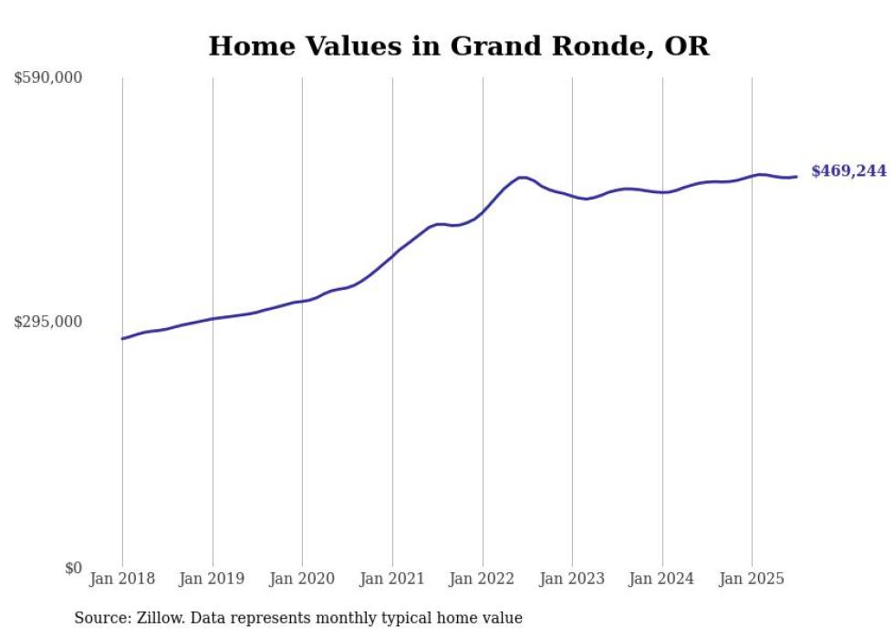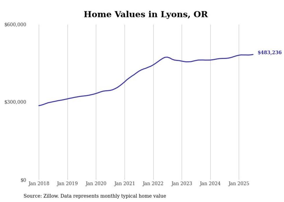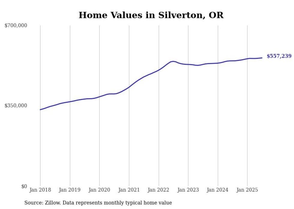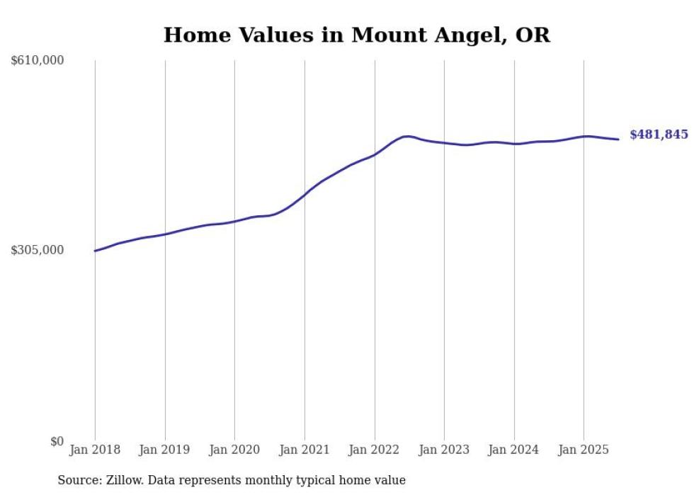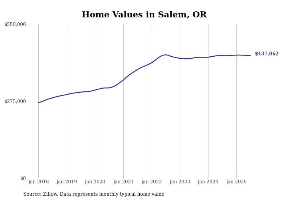 Stacker compiled a list of cities with the most expensive homes in the Salem metro area using data from Zillow. Charts show the monthly typical home value since January 2018. All 26 cities and towns with data available were included in the list.