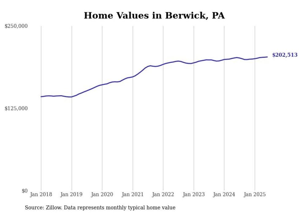 Stacker compiled a list of cities with the most expensive homes in the Bloomsburg-Berwick, PA metro area using data from Zillow. Charts show the monthly typical home value since January 2018.