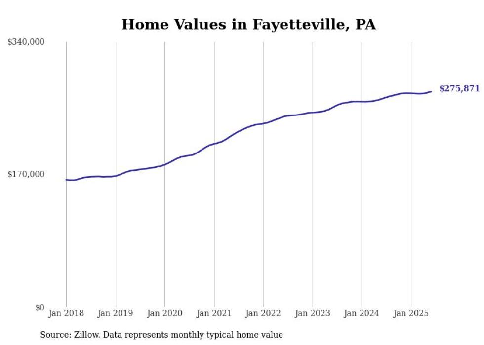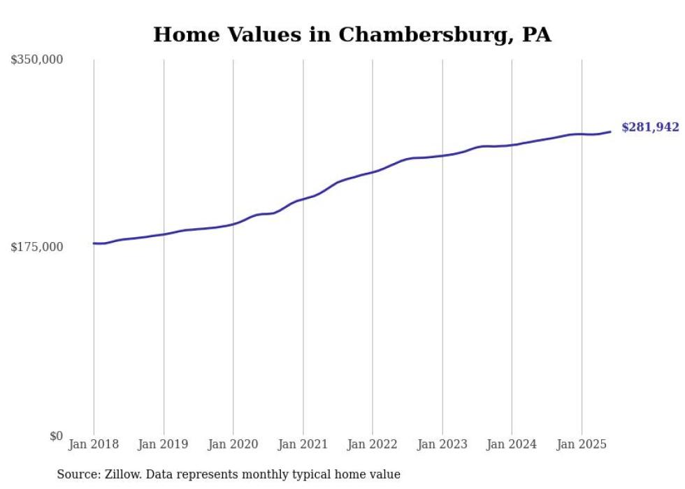 Cities with the fastest-growing home prices in the Chambersburg metro area