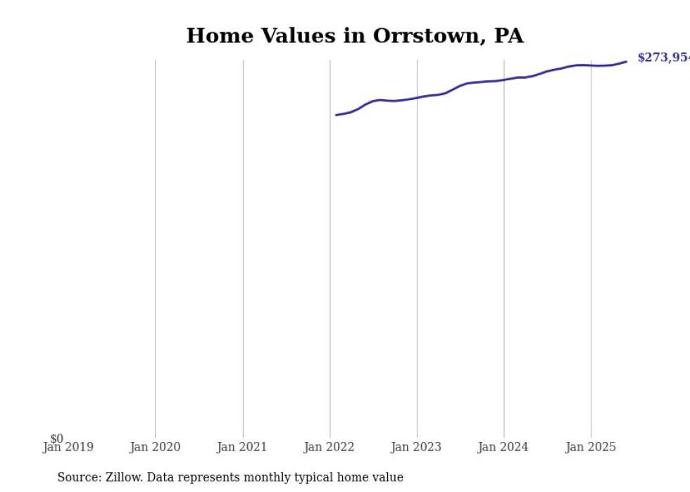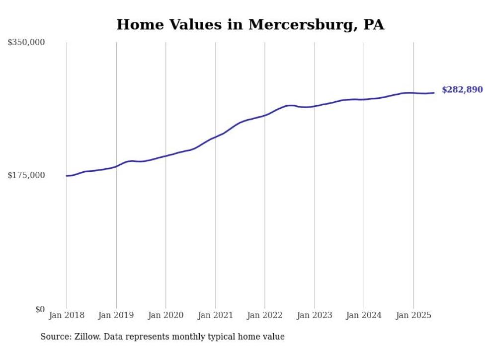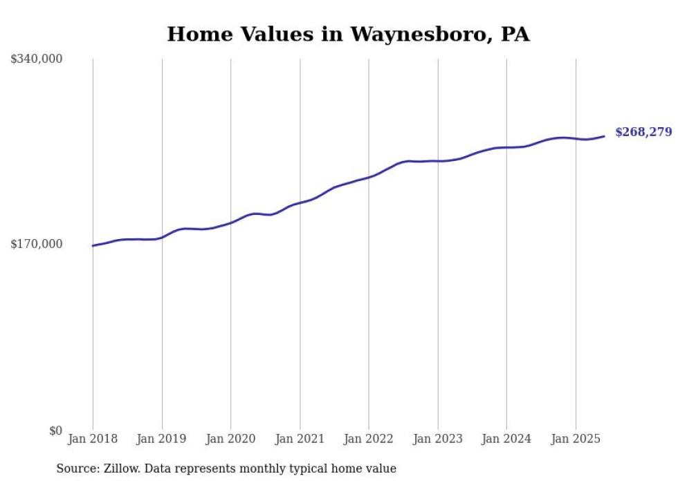 Stacker compiled a list of cities with the most expensive homes in the Chambersburg-Waynesboro, PA metro area using data from Zillow. Charts show the monthly typical home value since January 2018.