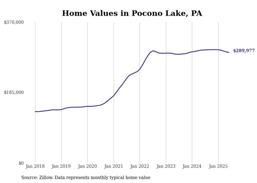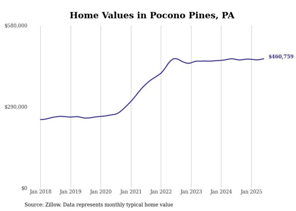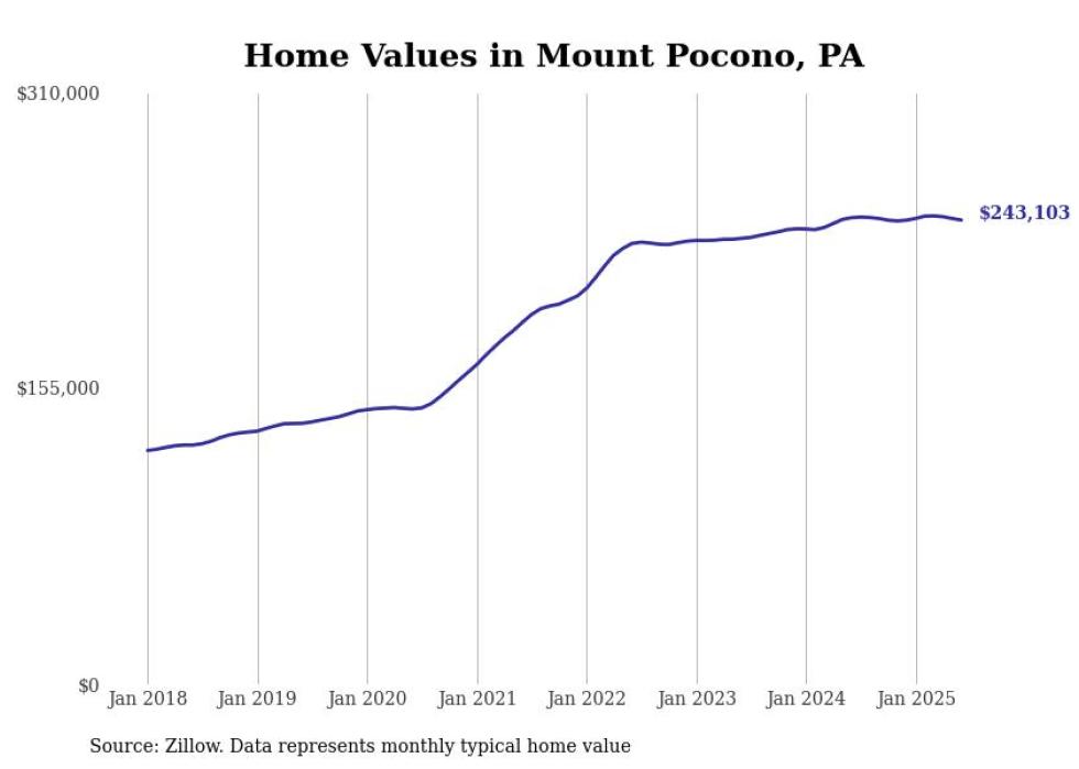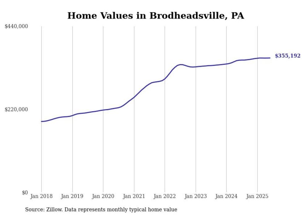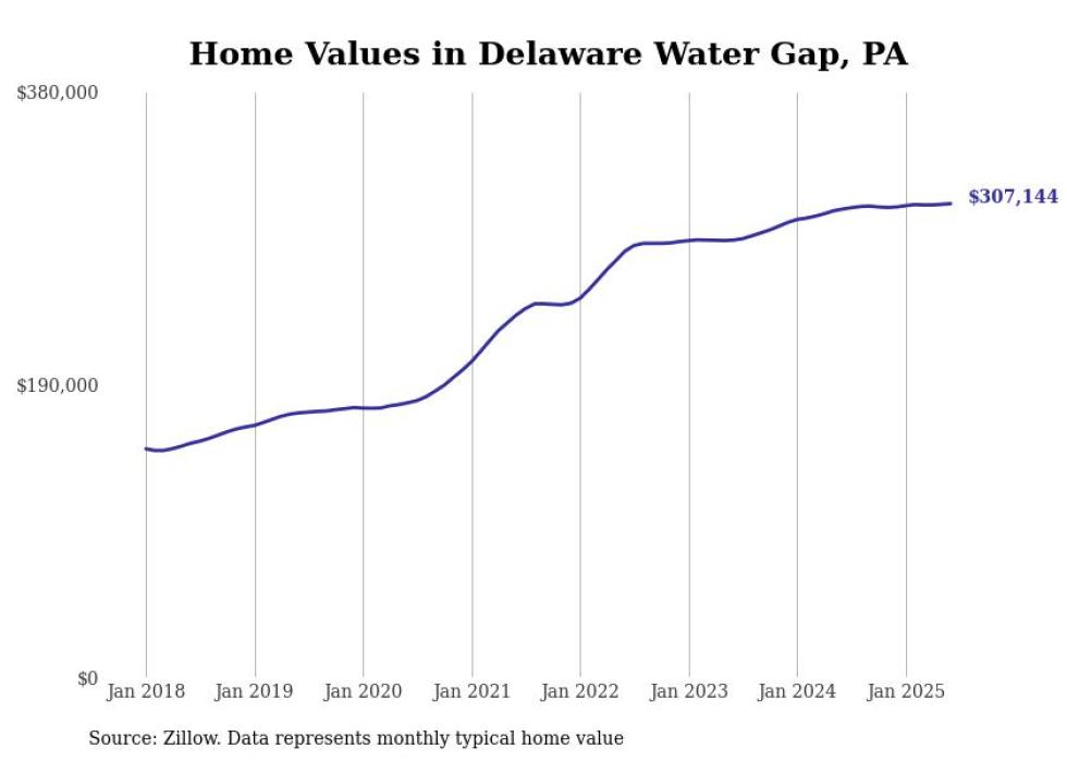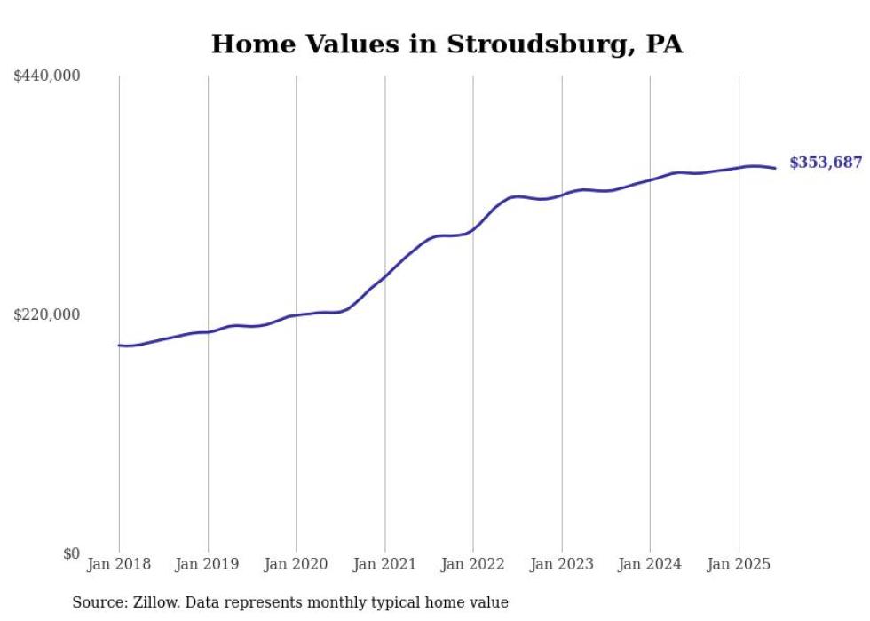 Stacker compiled a list of cities with the most expensive homes in the East Stroudsburg, PA metro area using data from Zillow. Charts show the monthly typical home value since January 2018.