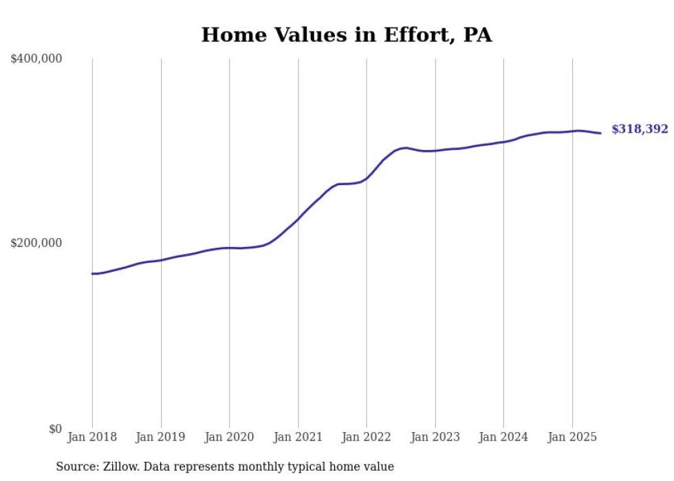 Cities with the fastest-growing home prices in the East Stroudsburg metro area