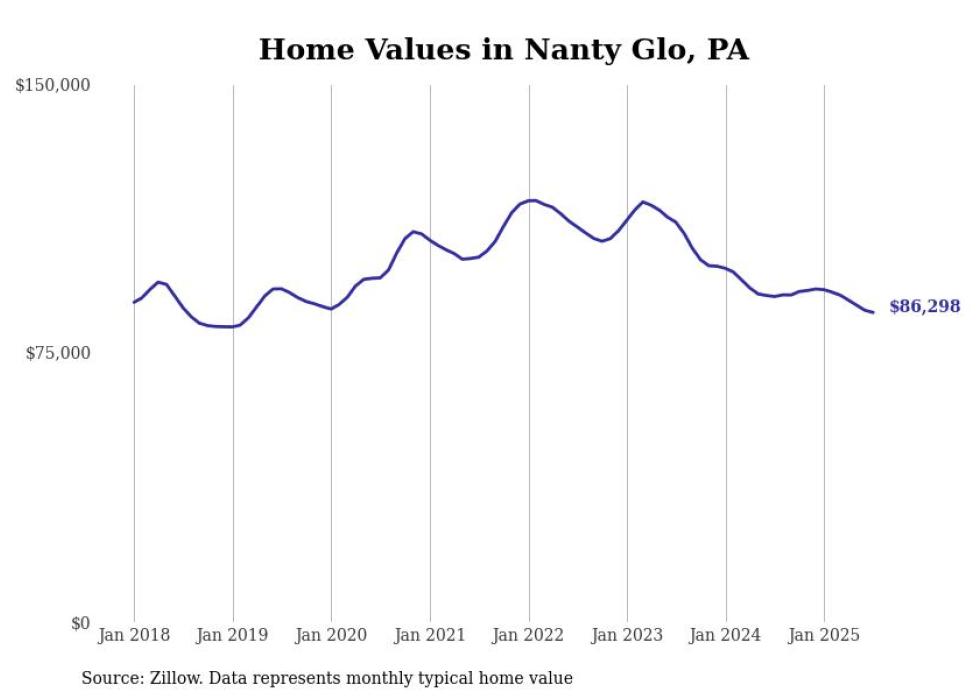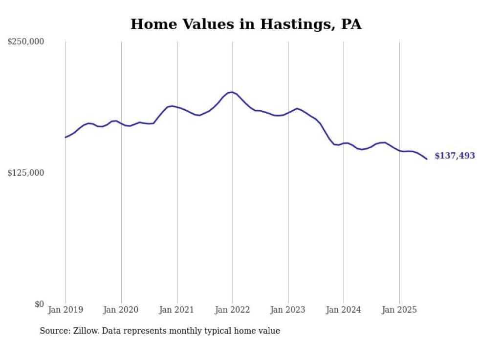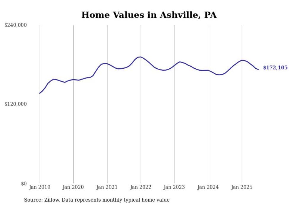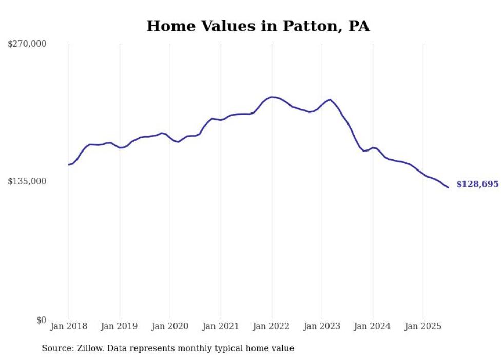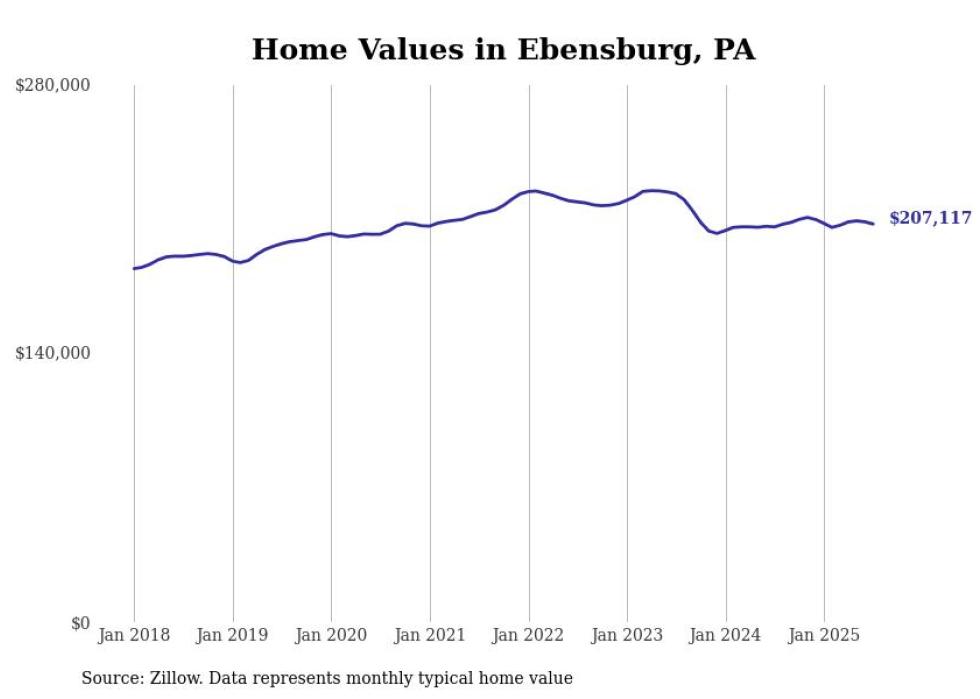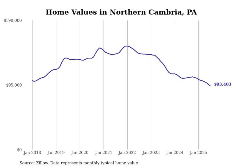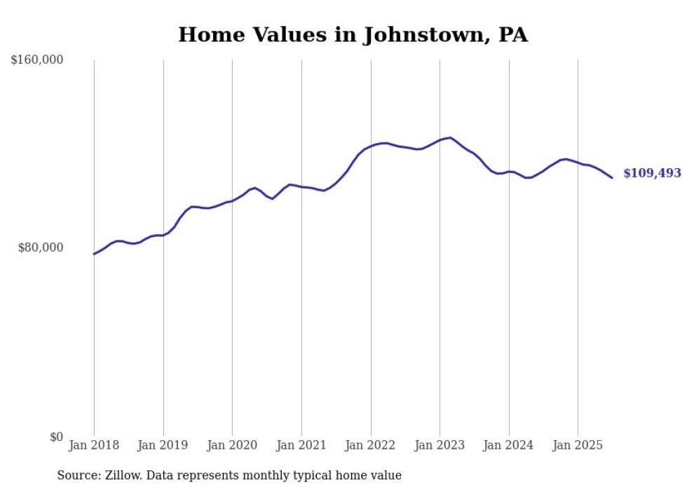 Stacker compiled a list of cities with the most expensive homes in the Johnstown metro area using data from Zillow. Charts show the monthly typical home value since January 2018. All 8 cities and towns with data available were included in the list.