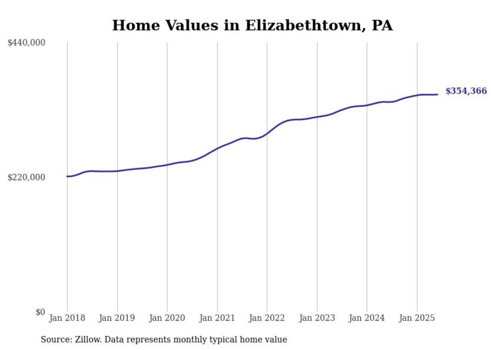 Stacker compiled a list of cities with the most expensive homes in the Lancaster, PA metro area using data from Zillow. Charts show the monthly typical home value since January 2018.