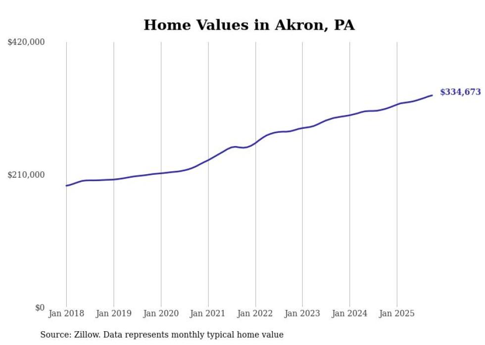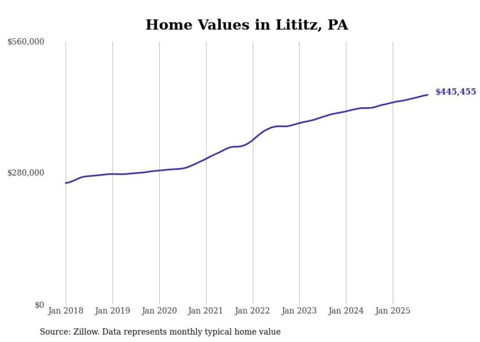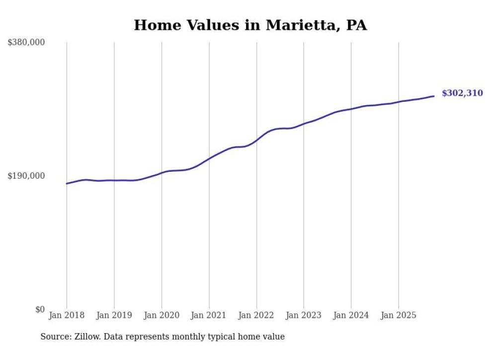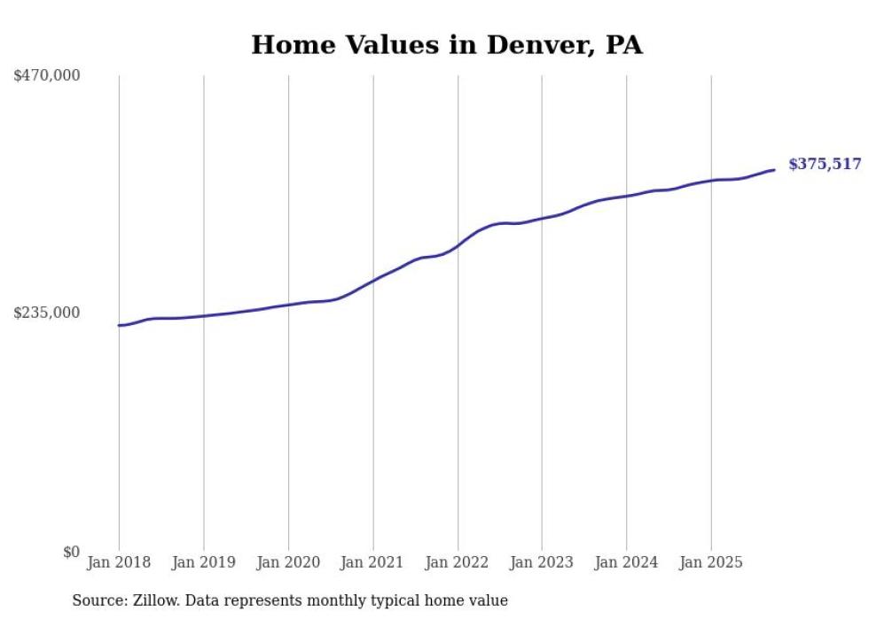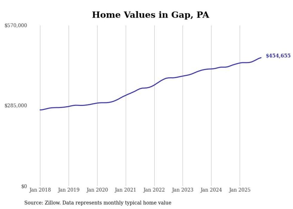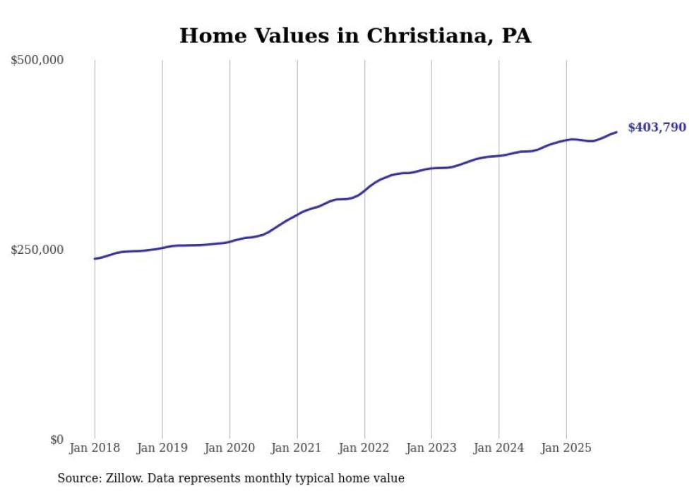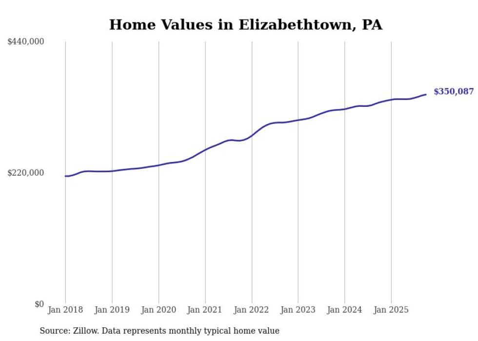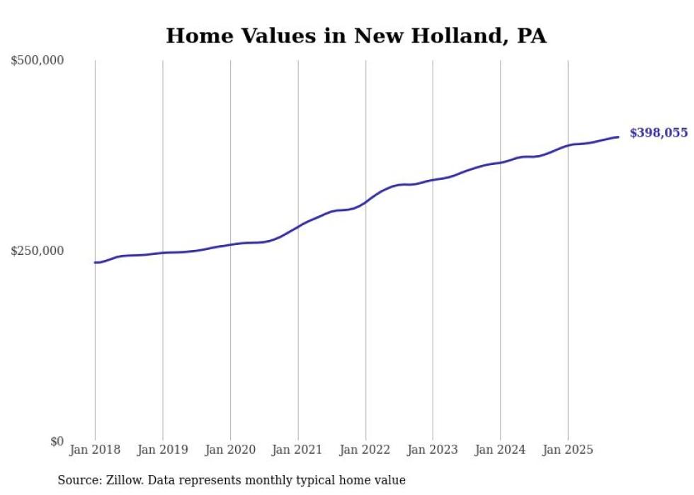 Stacker compiled a list of cities with the most expensive homes in the Lancaster metro area using data from Zillow. Charts show the monthly typical home value since January 2018. All 17 cities and towns with data available were included in the list.