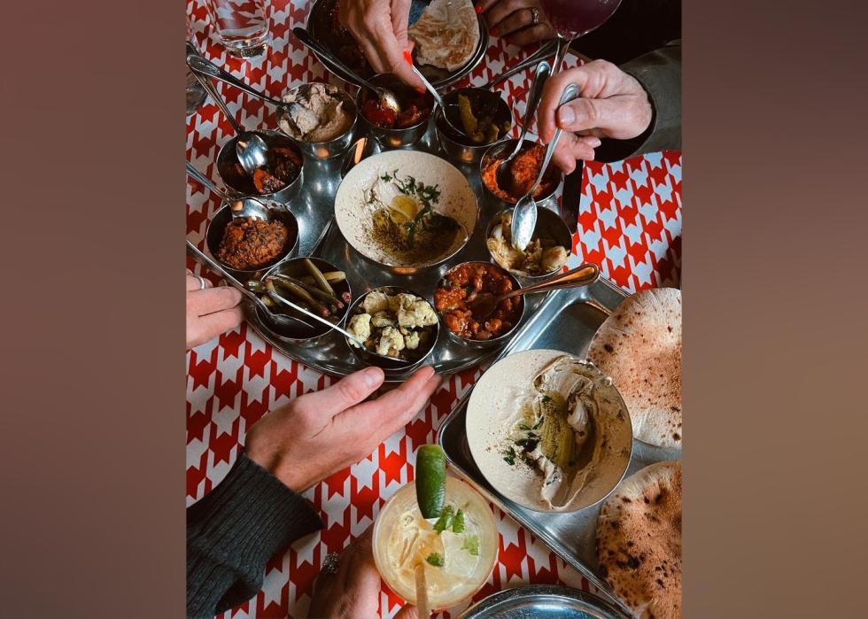 Middle Eastern dining emphasizes a shared experience, with many dishes designed to be eaten communally so that everyone at the table can build relationships through food. Mezze platters of bite-sized options and family-style stews are perfect for a night out with family or friends.