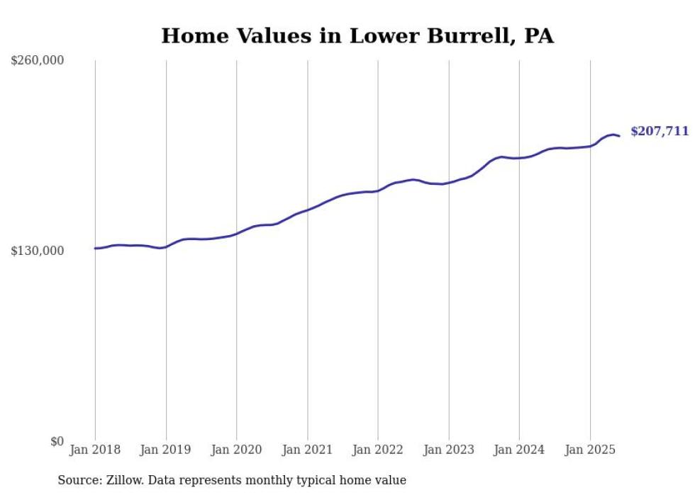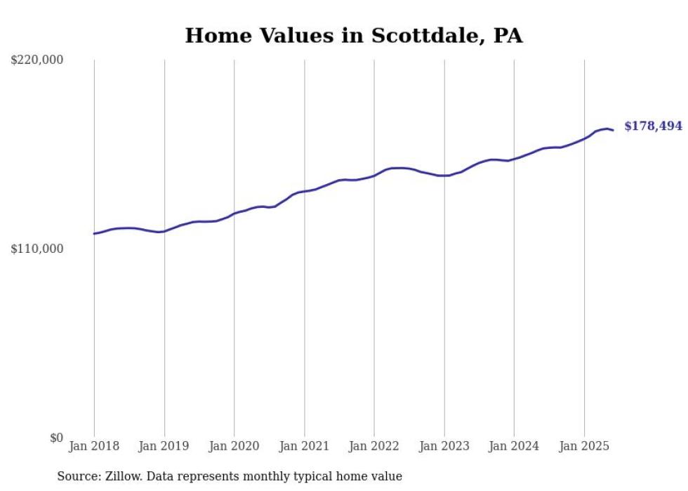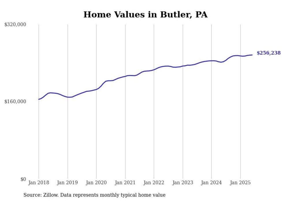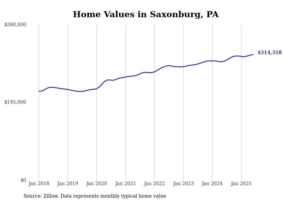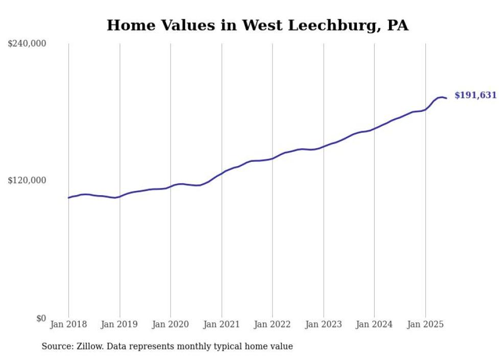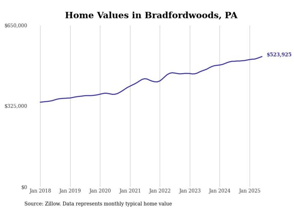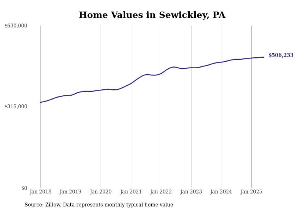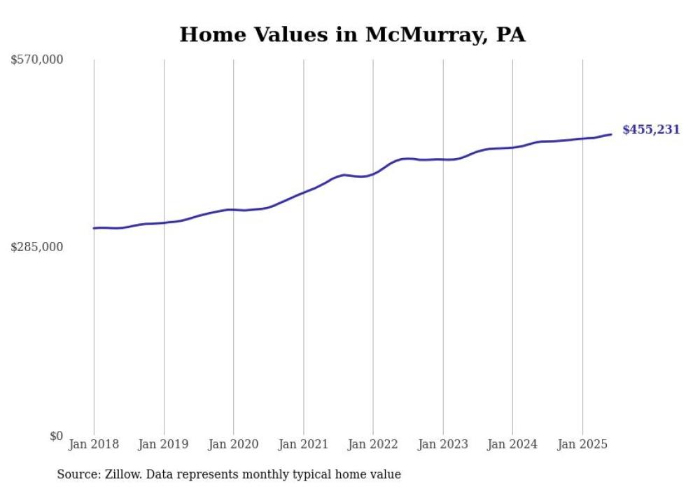 Stacker compiled a list of cities with the most expensive homes in the Pittsburgh, PA metro area using data from Zillow. Charts show the monthly typical home value since January 2018.