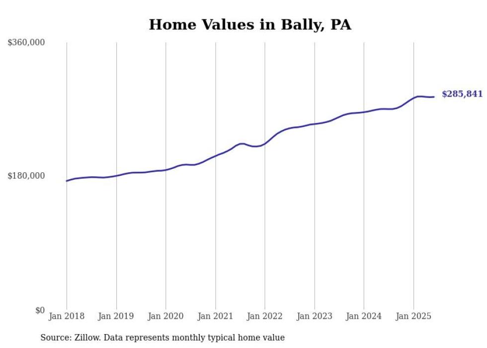 Stacker compiled a list of cities with the most expensive homes in the Reading, PA metro area using data from Zillow. Charts show the monthly typical home value since January 2018.