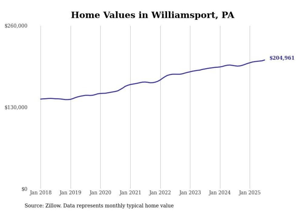 Stacker compiled a list of cities with the most expensive homes in the Williamsport metro area using data from Zillow. Charts show the monthly typical home value since January 2018. All 7 cities and towns with data available were included in the list.