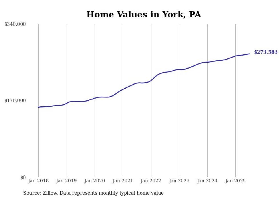 Stacker compiled a list of cities with the most expensive homes in the York metro area using data from Zillow. Charts show the monthly typical home value since January 2018. All 24 cities and towns with data available were included in the list.