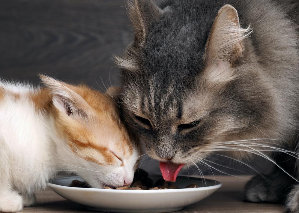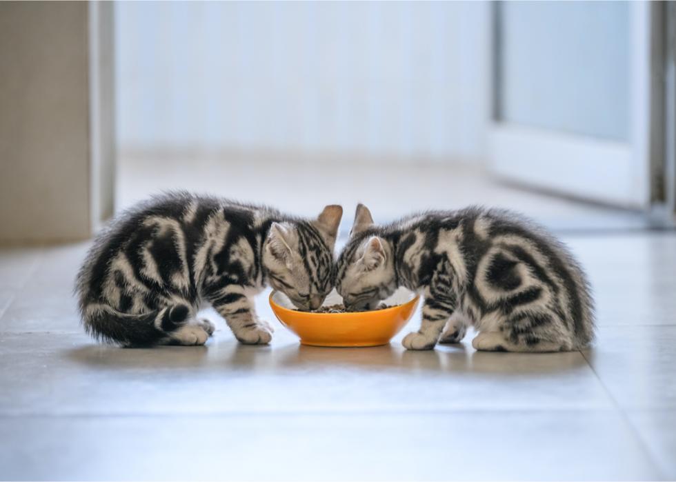 About four or five weeks after birth, mother cats will start leaving their kittens alone for longer and longer periods of time. When this happens, the cat is just about ready to dig into some cat food.