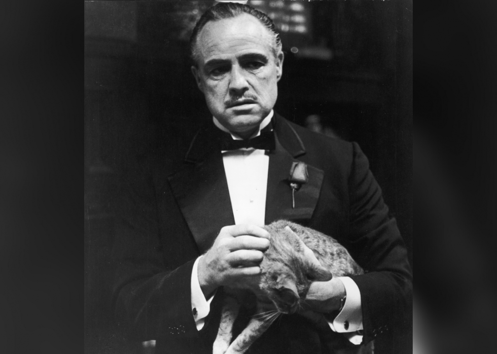 In the famous opening scene of "The Godfather," Marlon Brando's character Don Vito Corleone calmly strokes a cat while discussing a proposition to commit murder—but the feline wasn't part of the script. Director Francis Ford Copolla found the cat—a stray wandering the studio lot—and handed it to Brando, a famous animal lover. The cat's heavy purring, however, almost ruined the audio in one of the most famous scenes in movie history.