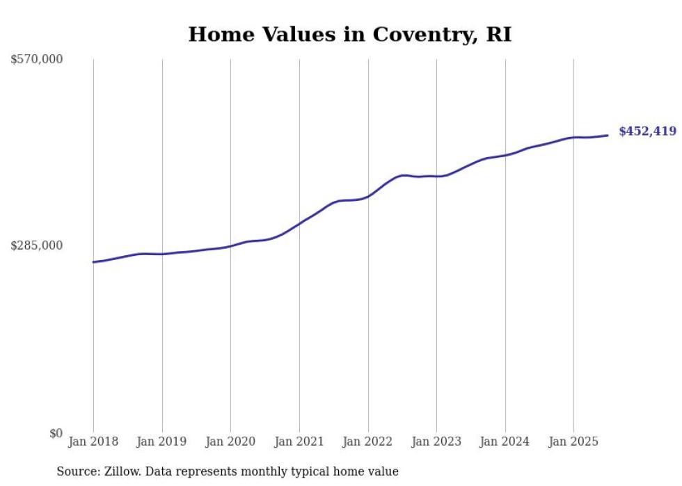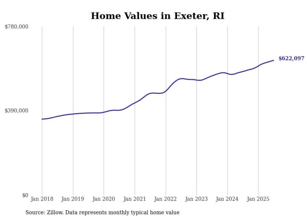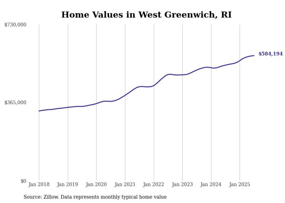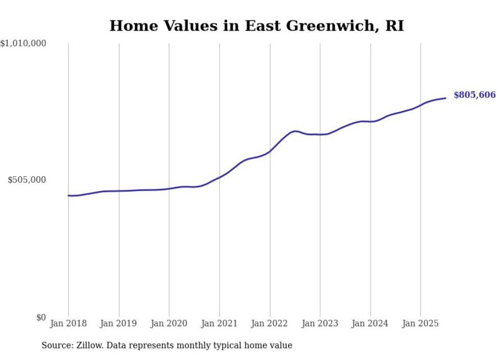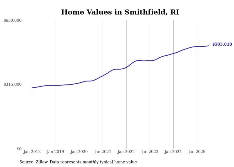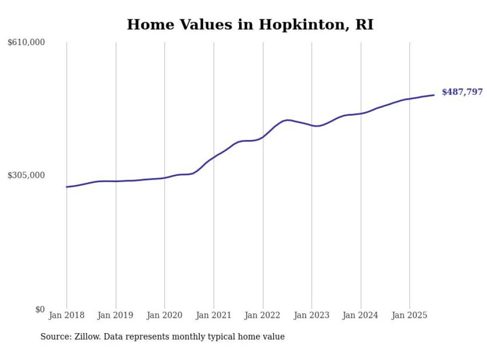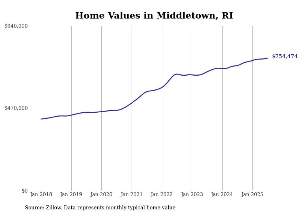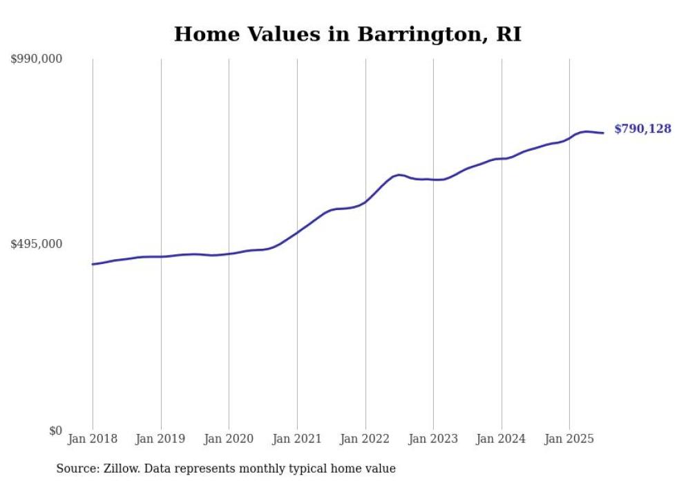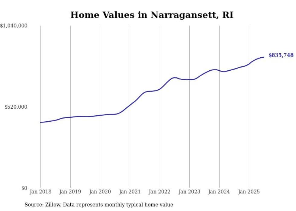 Stacker compiled a list of cities with the most expensive homes in Rhode Island using data from Zillow. Cities are ranked by the Zillow Home Values Index for all homes as of July 2025. The charts in this story were created automatically using Matplotlib.