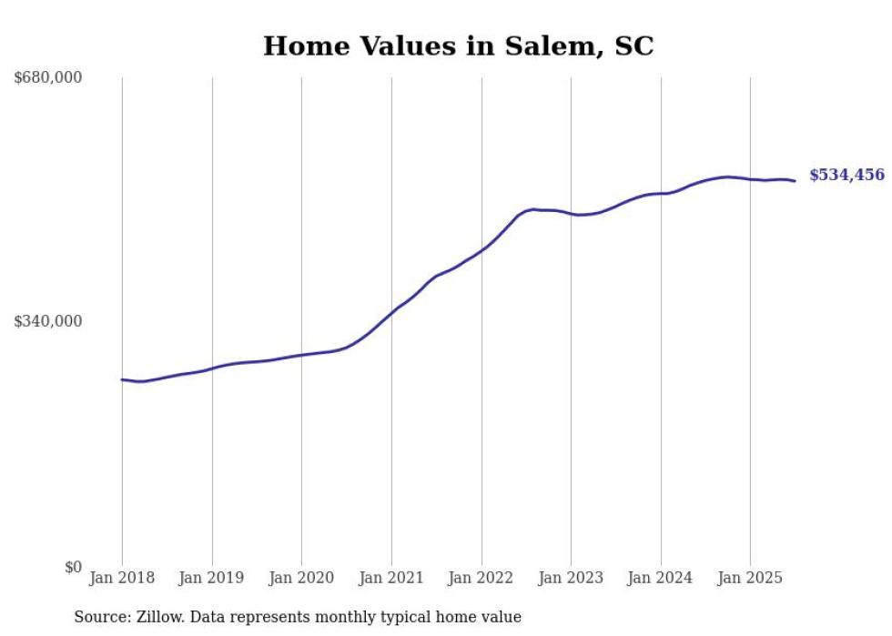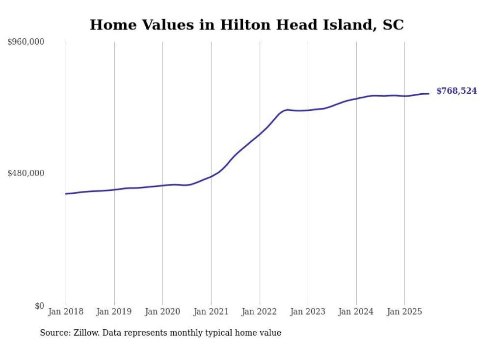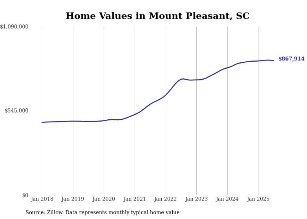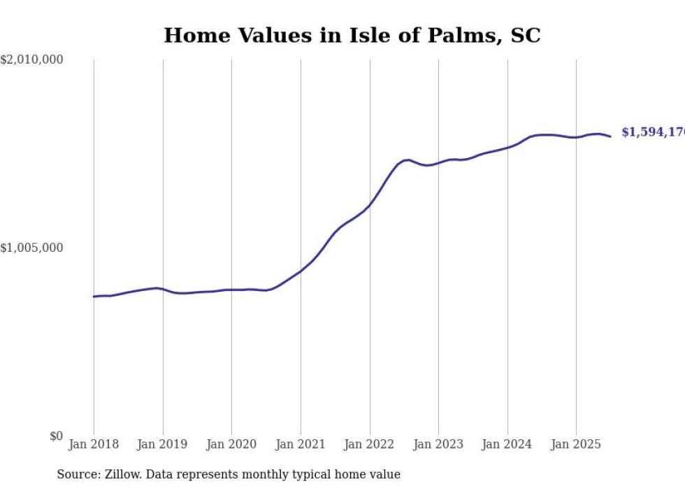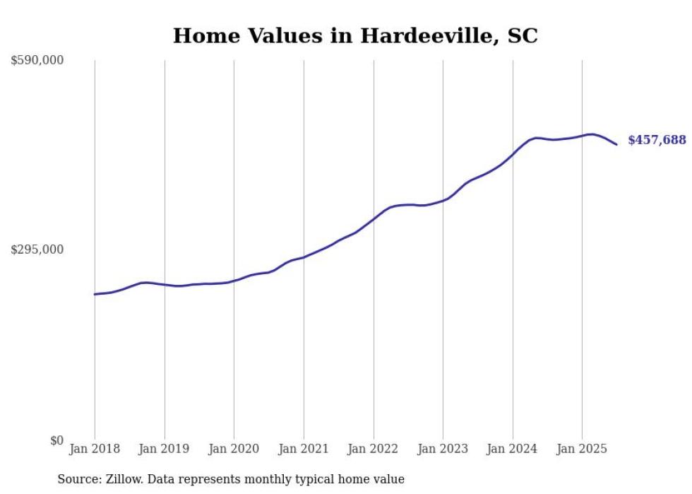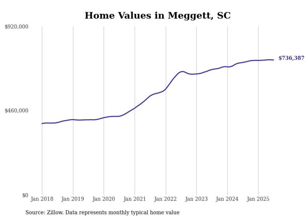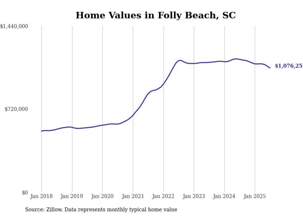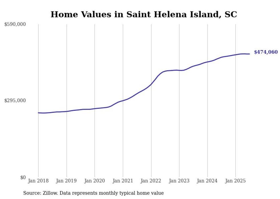 Stacker compiled a list of cities with the most expensive homes in South Carolina using data from Zillow. Cities are ranked by the Zillow Home Values Index for all homes as of July 2025. The charts in this story were created automatically using Matplotlib.