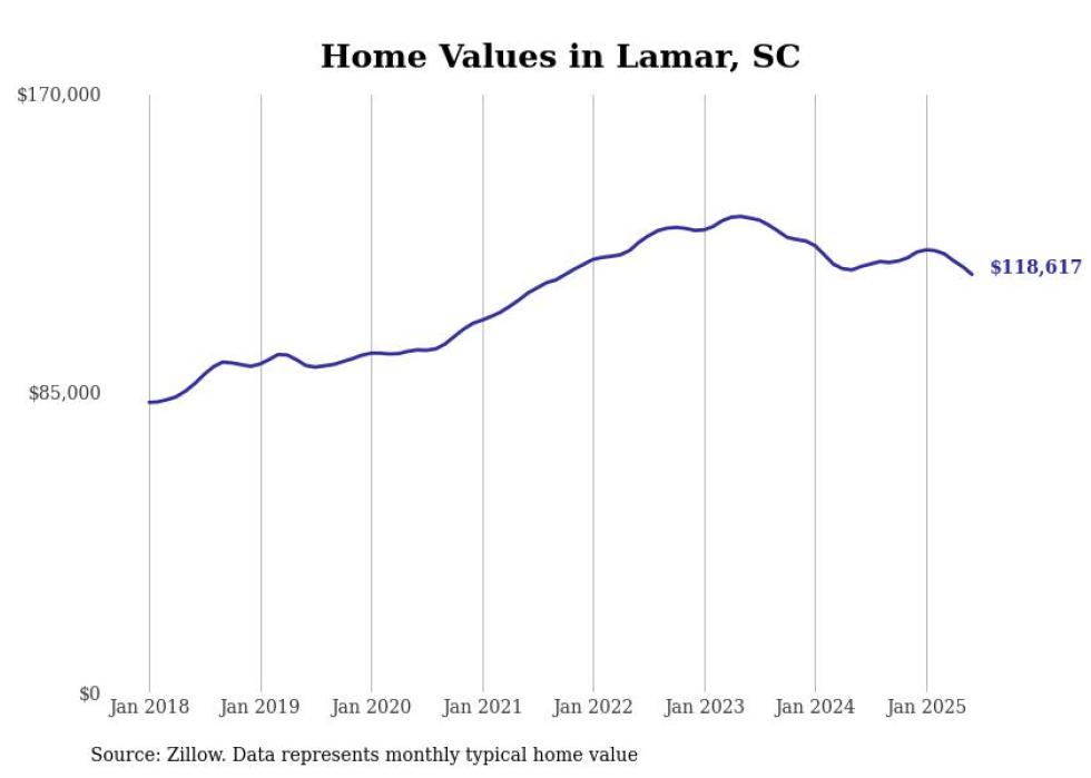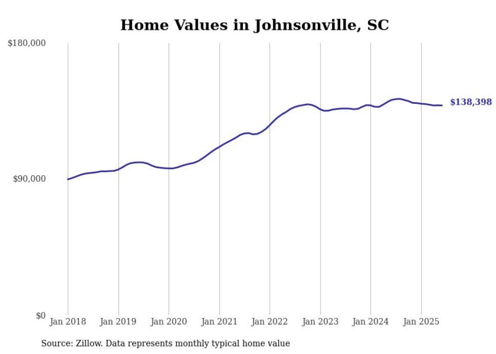Stacker compiled a list of cities with the most expensive homes in the Florence, SC metro area using data from Zillow. Charts show the monthly typical home value since January 2018.