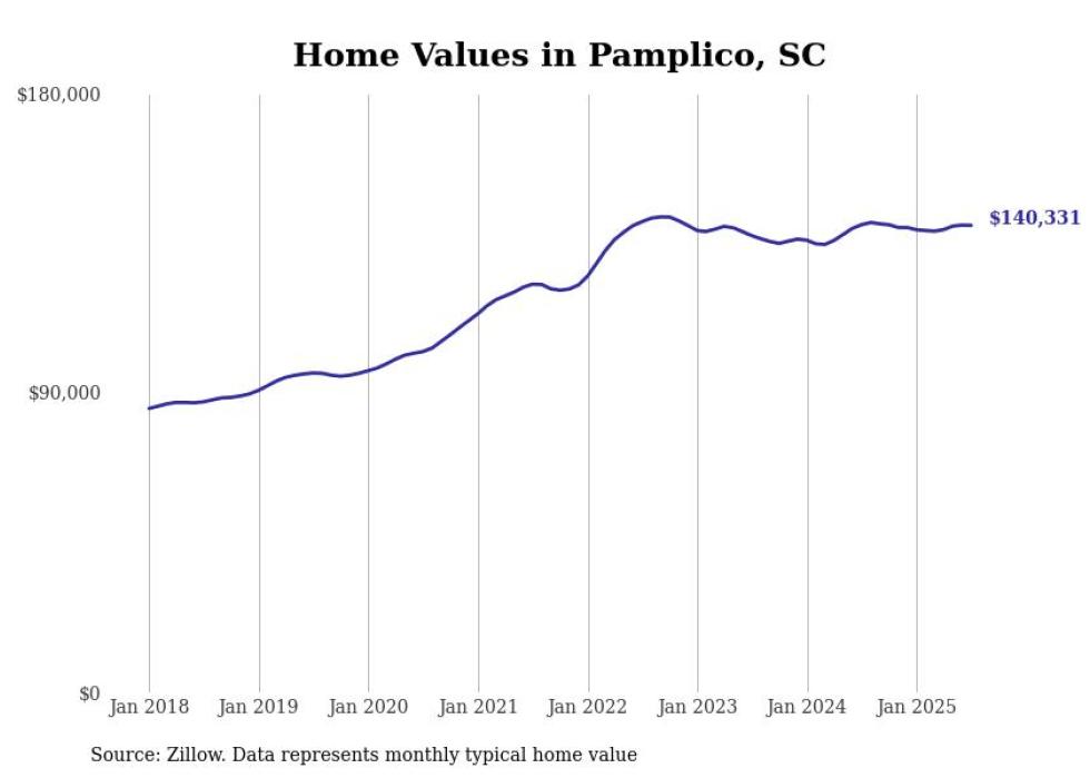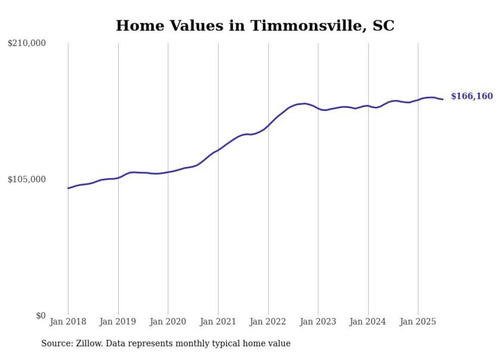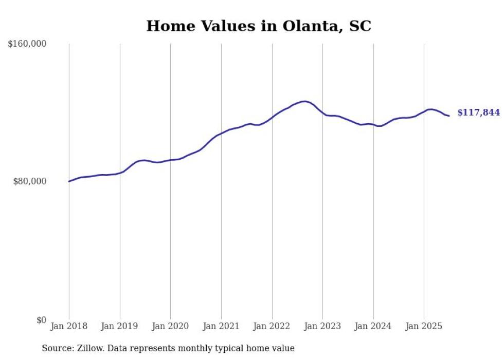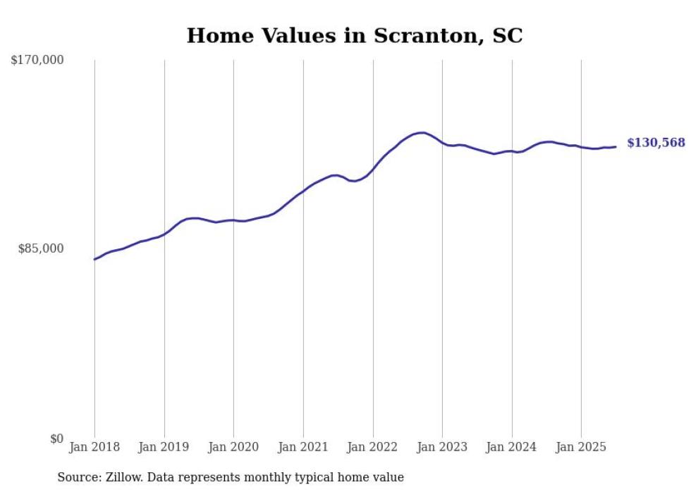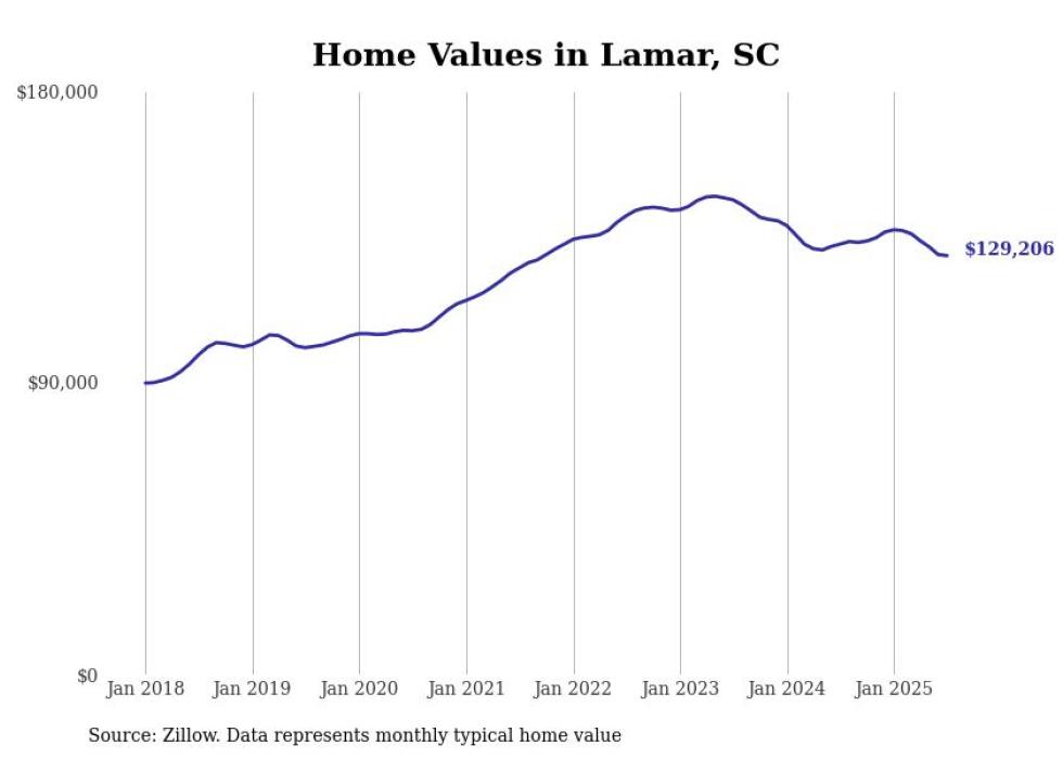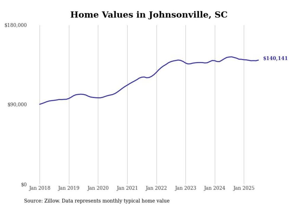 Stacker compiled a list of cities with the most expensive homes in the Florence, South Carolina metro area using data from Zillow. Charts show the monthly typical home value since January 2018. All 14 cities and towns with data available were included in the list.