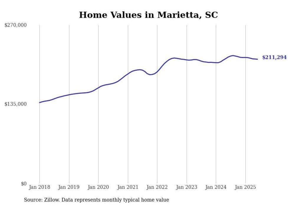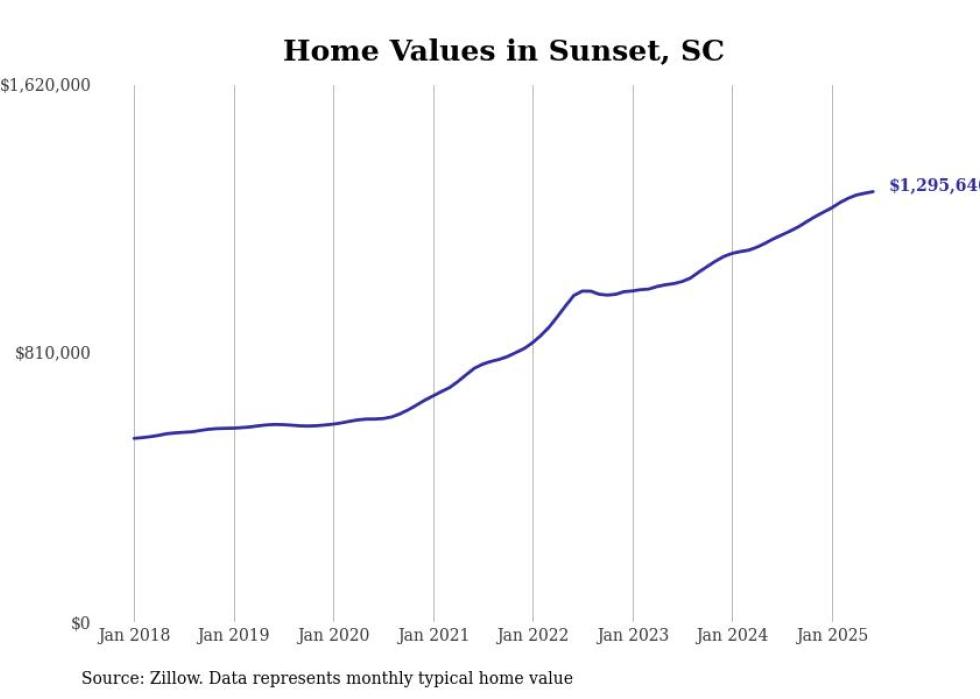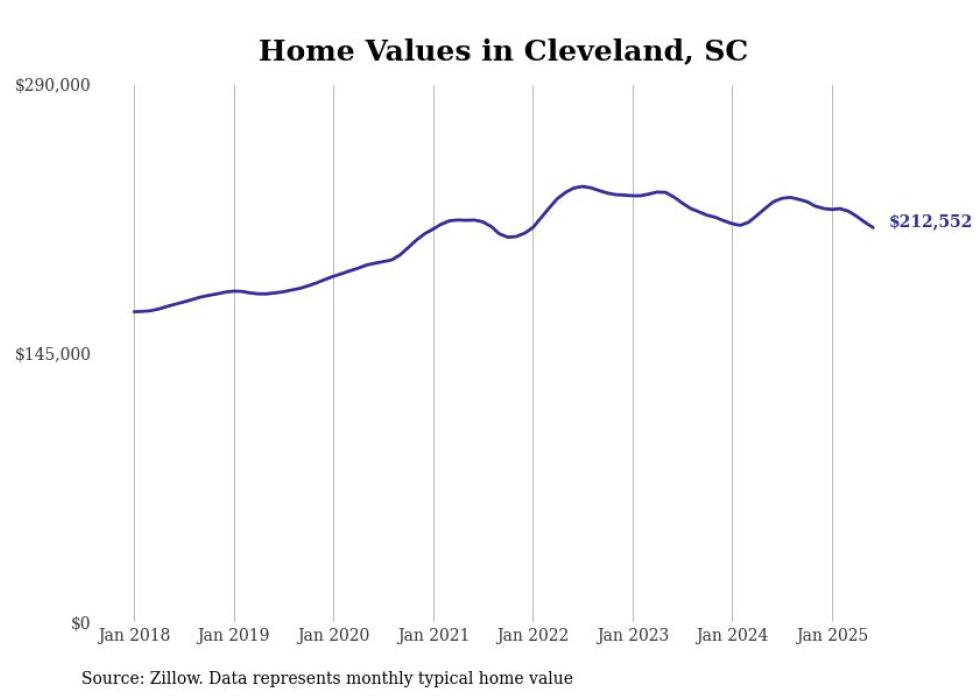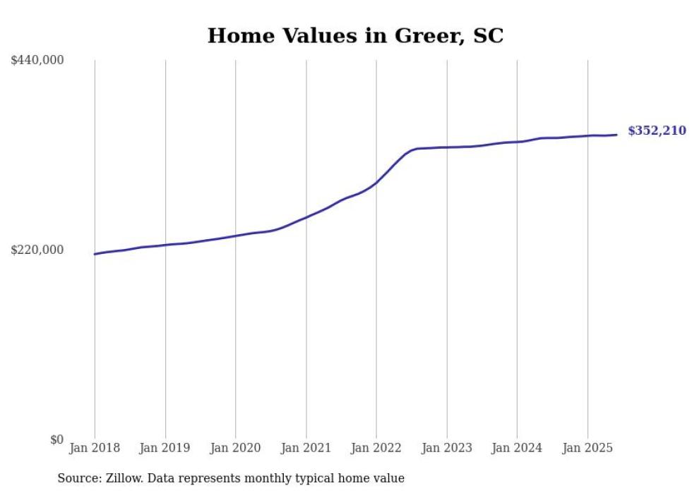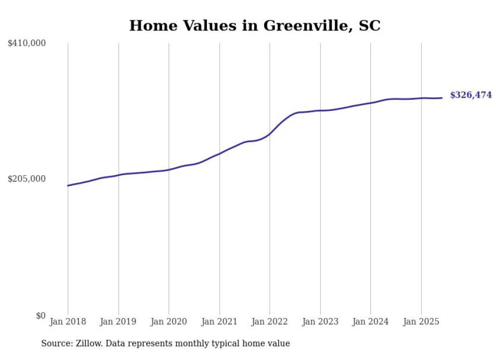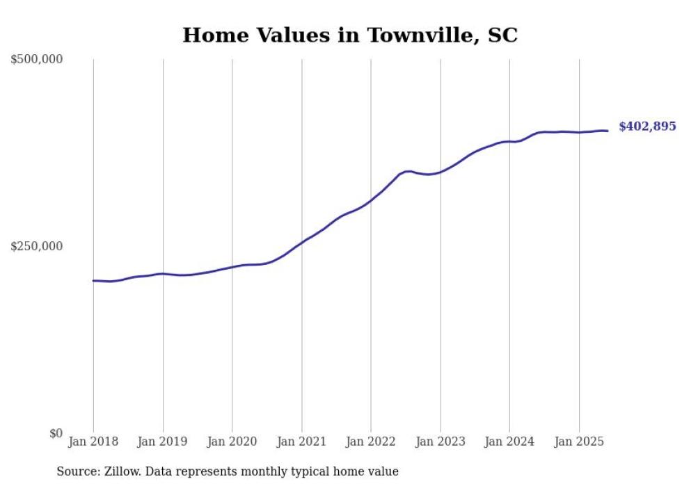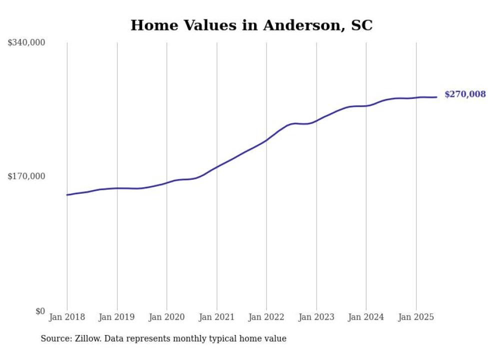 Stacker compiled a list of cities with the most expensive homes in the Greenville-Anderson, SC metro area using data from Zillow. Charts show the monthly typical home value since January 2018.