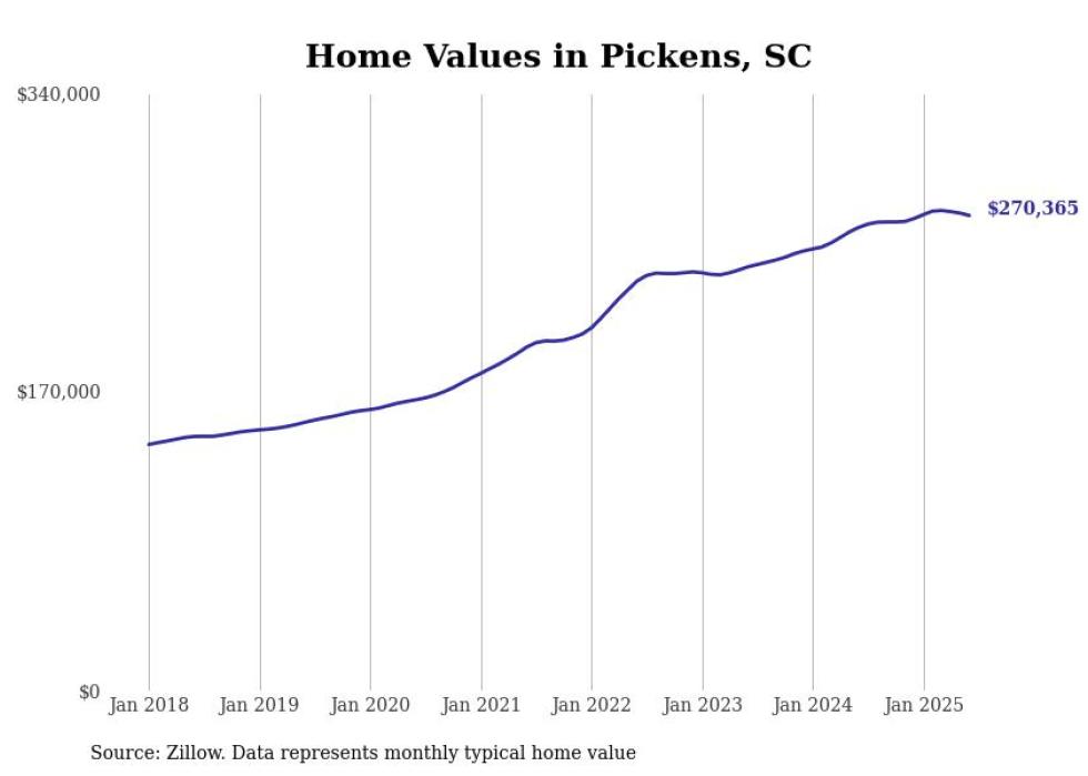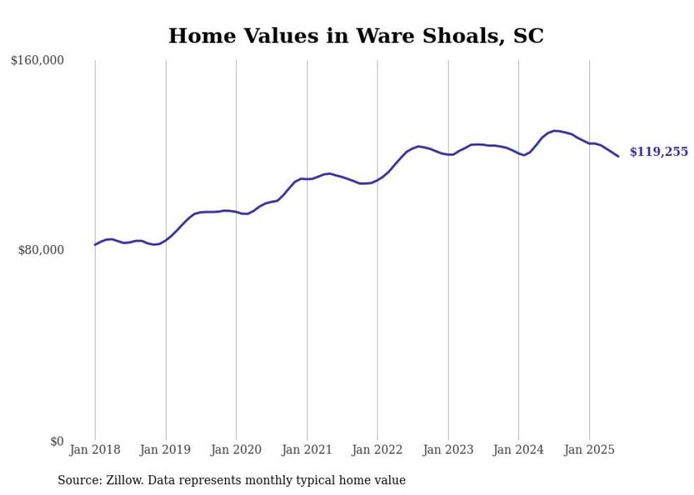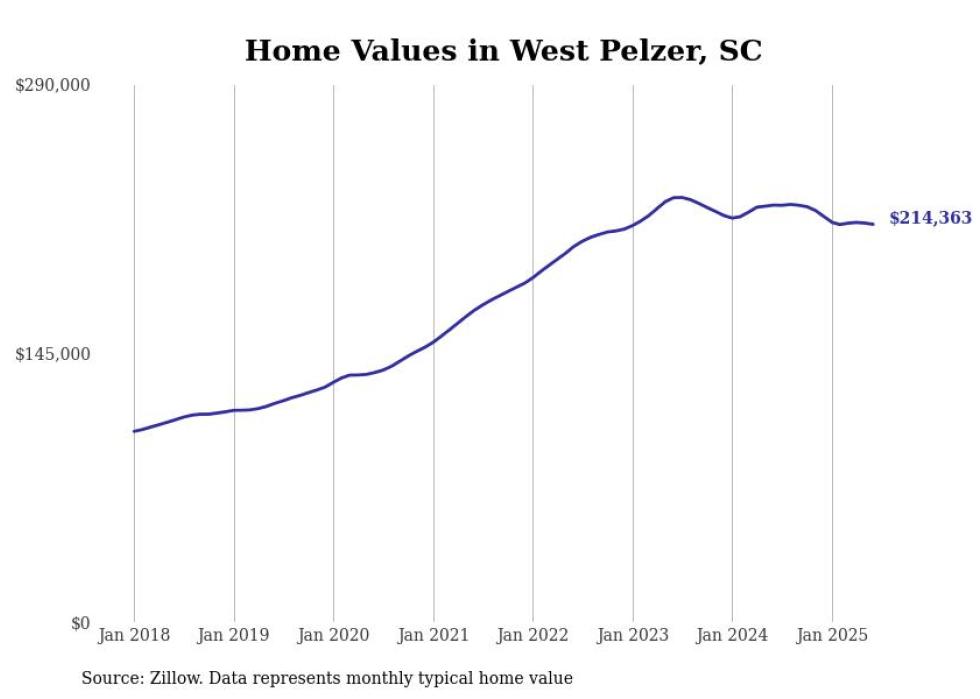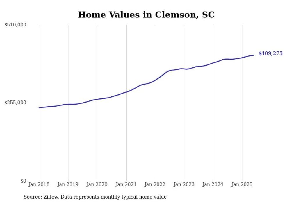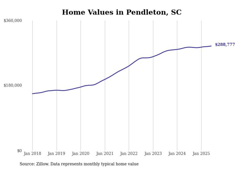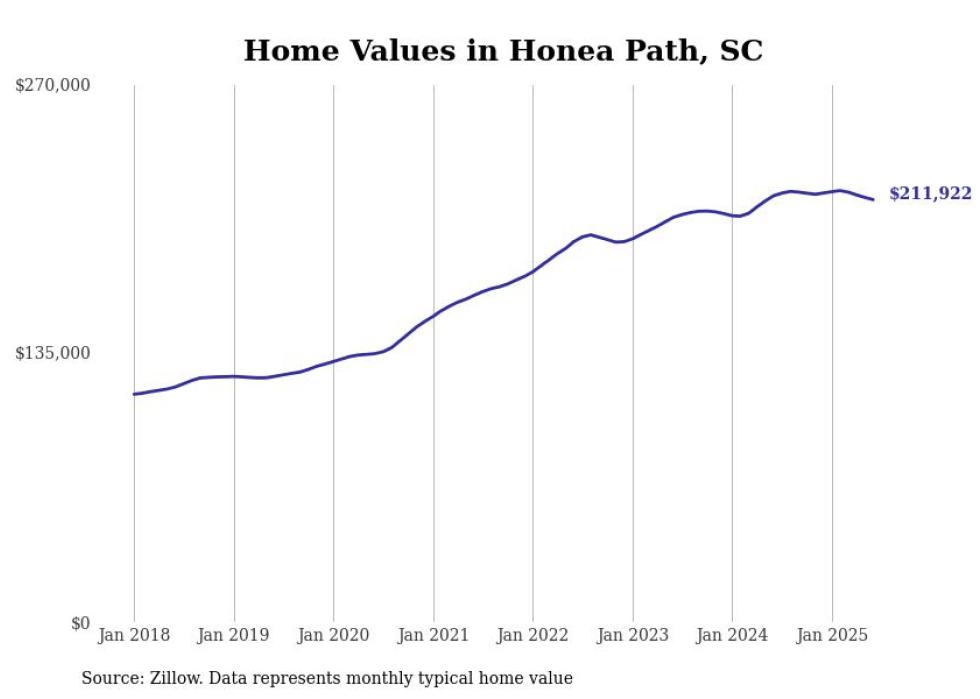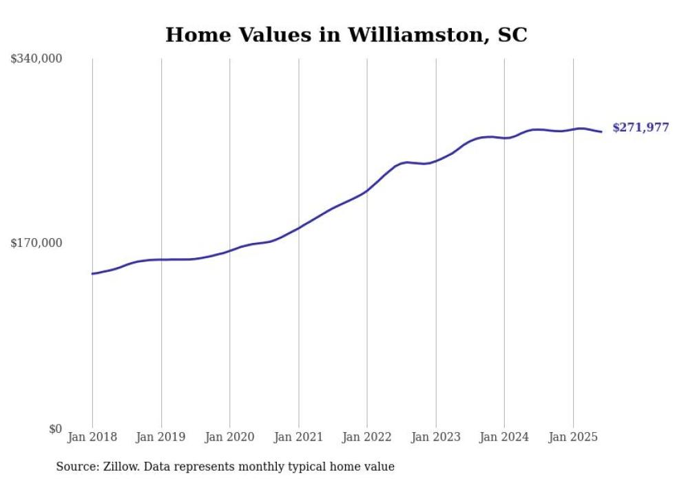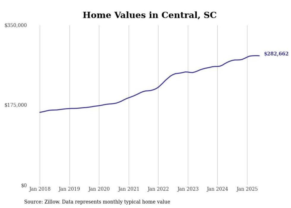 Stacker compiled a list of cities with the most expensive homes in the Greenville-Anderson, SC metro area using data from Zillow. Charts show the monthly typical home value since January 2018.