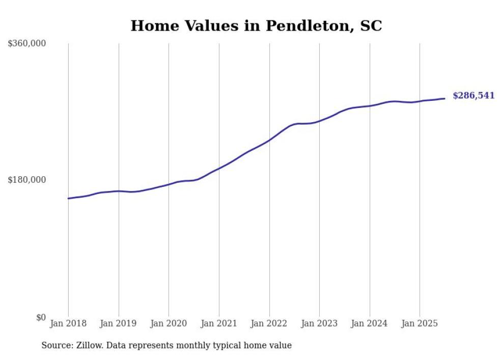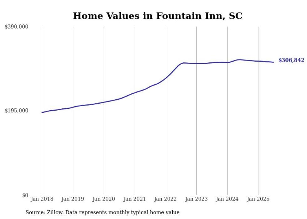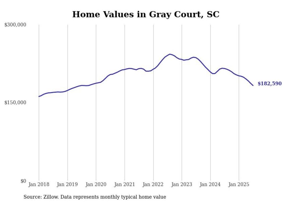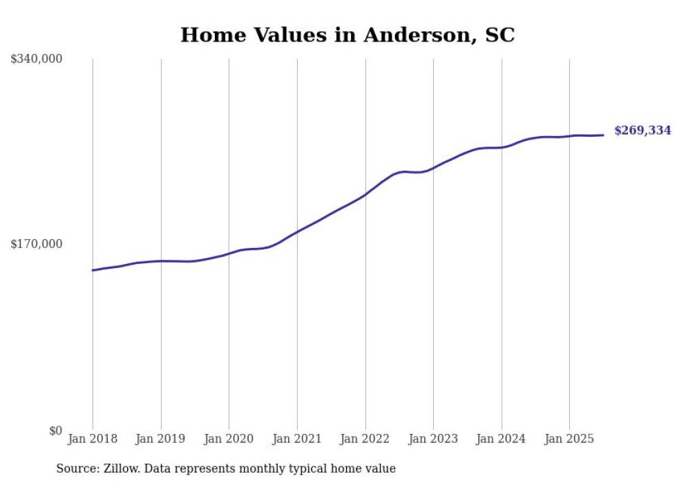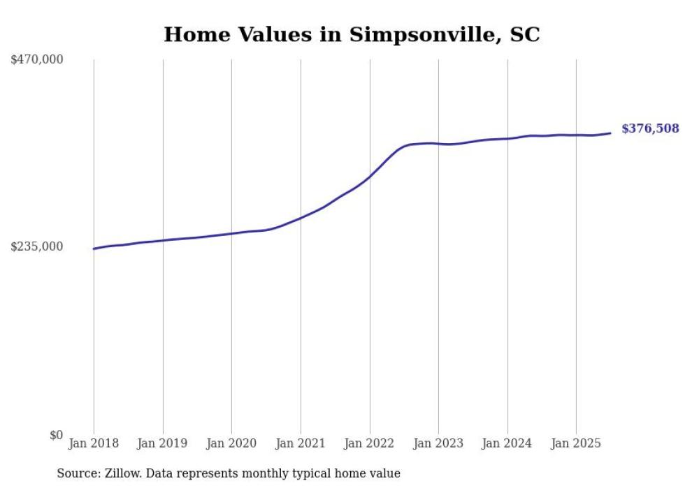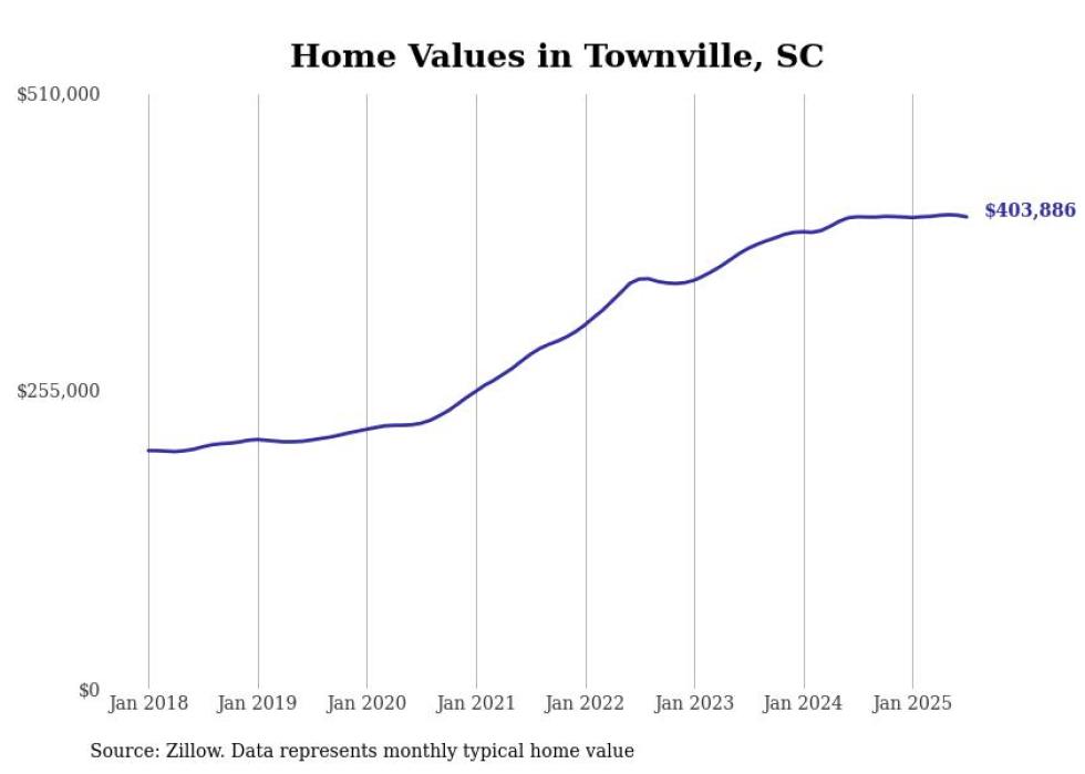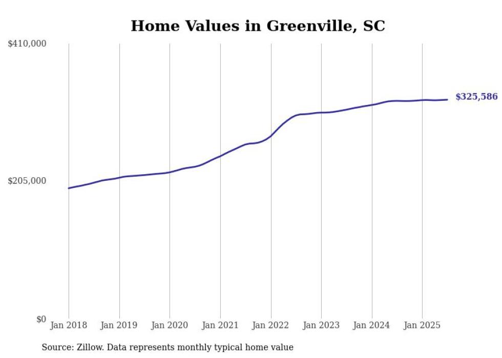 Stacker compiled a list of cities with the most expensive homes in the Greenville metro area using data from Zillow. Charts show the monthly typical home value since January 2018. Data was available for 33 cities and towns.