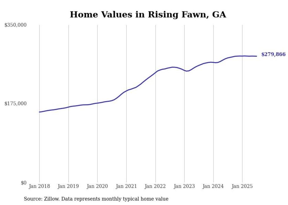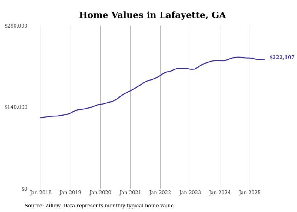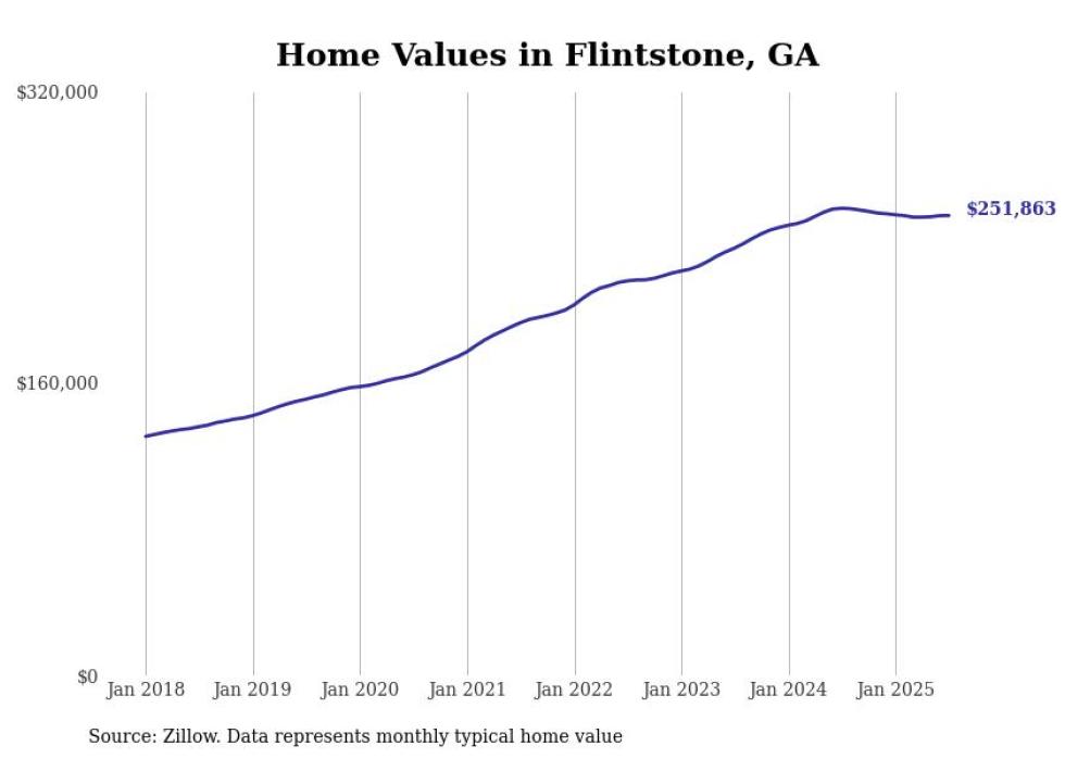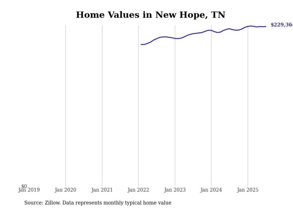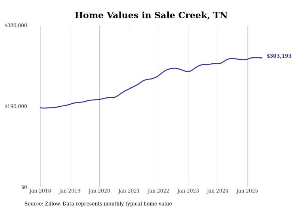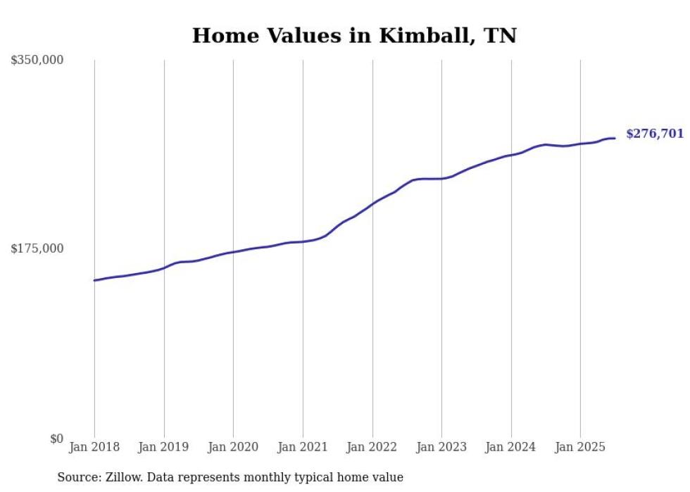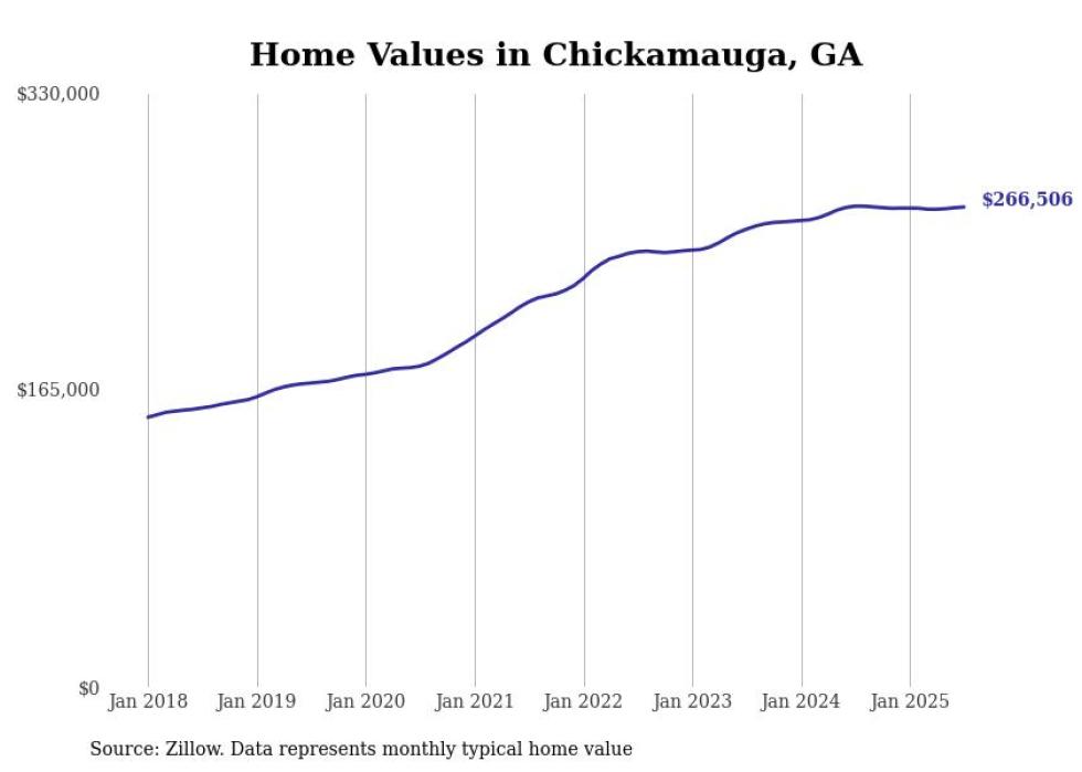 Stacker compiled a list of cities with the most expensive homes in the Chattanooga metro area using data from Zillow. Charts show the monthly typical home value since January 2018. Data was available for 36 cities and towns.