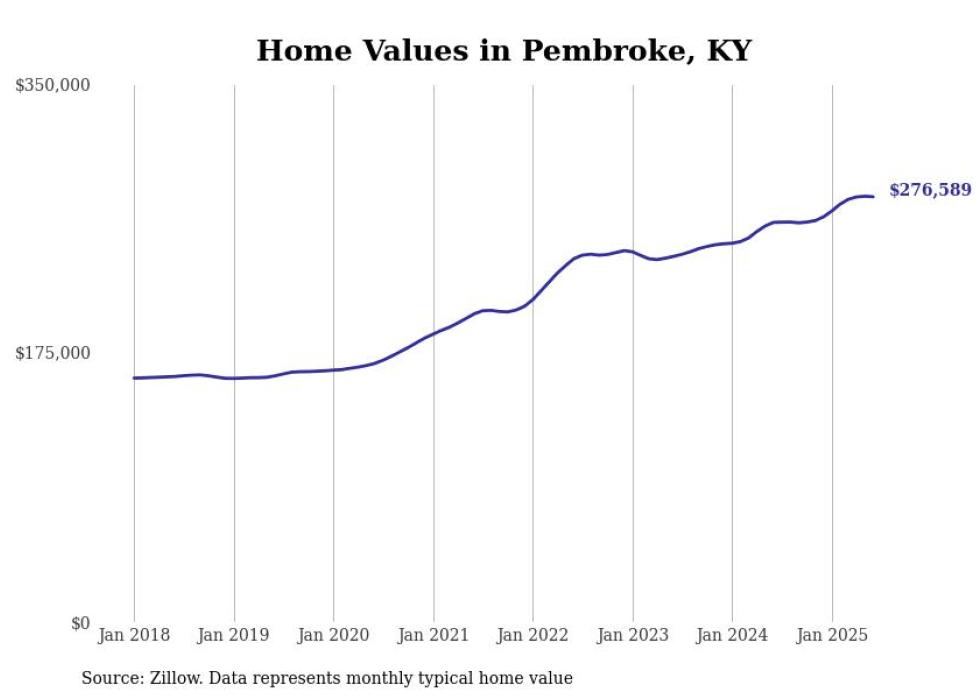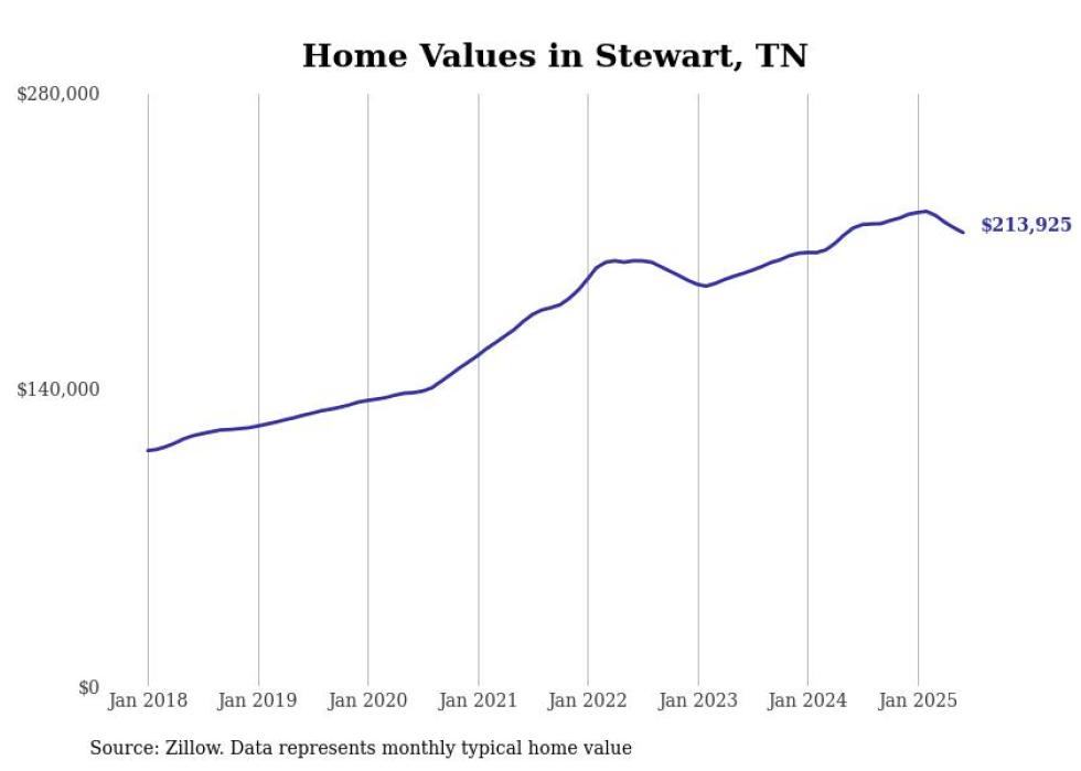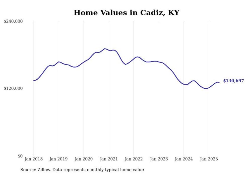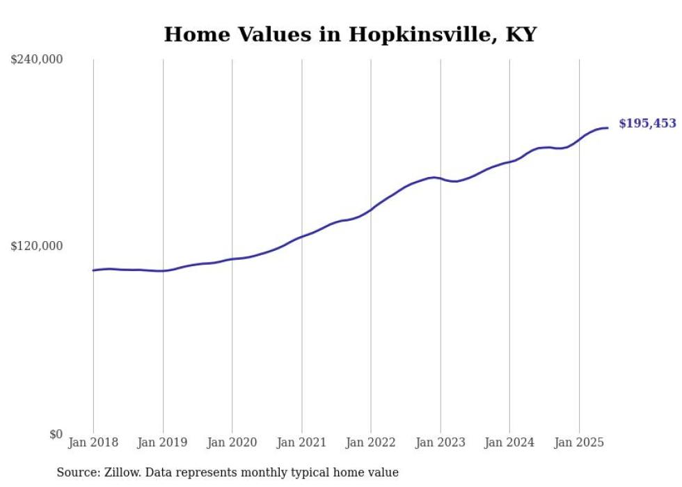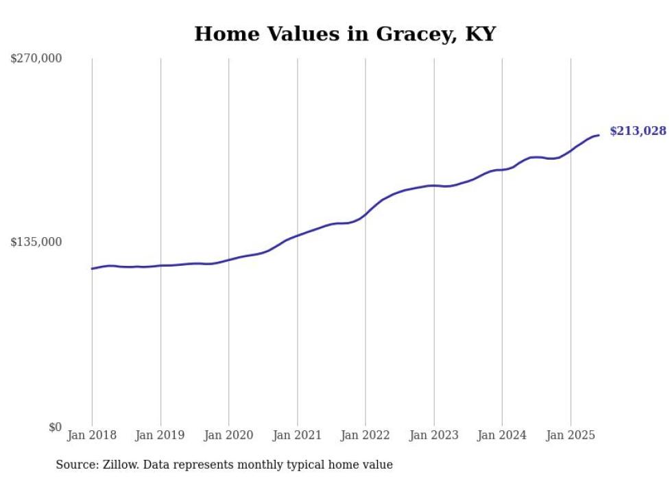 Stacker compiled a list of cities with the most expensive homes in the Clarksville, TN-KY metro area using data from Zillow. Charts show the monthly typical home value since January 2018.