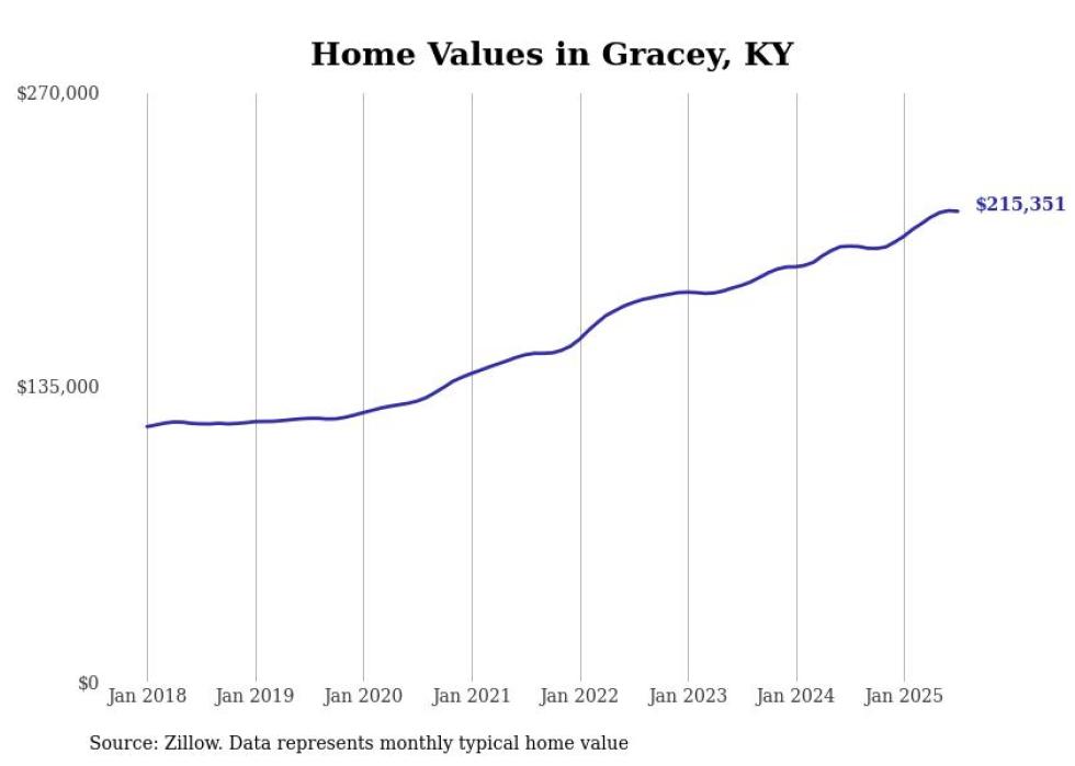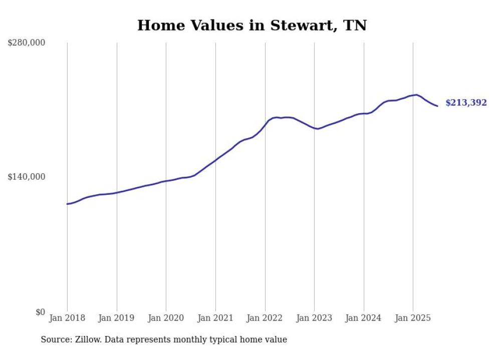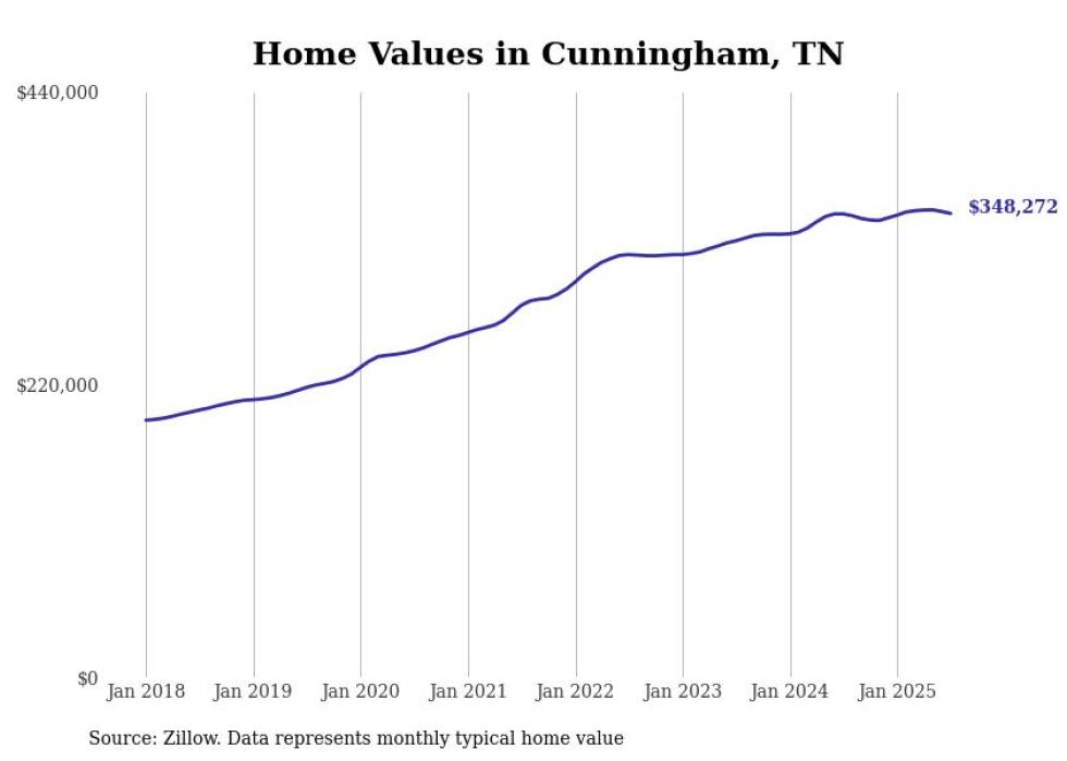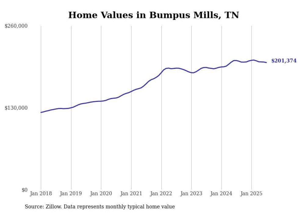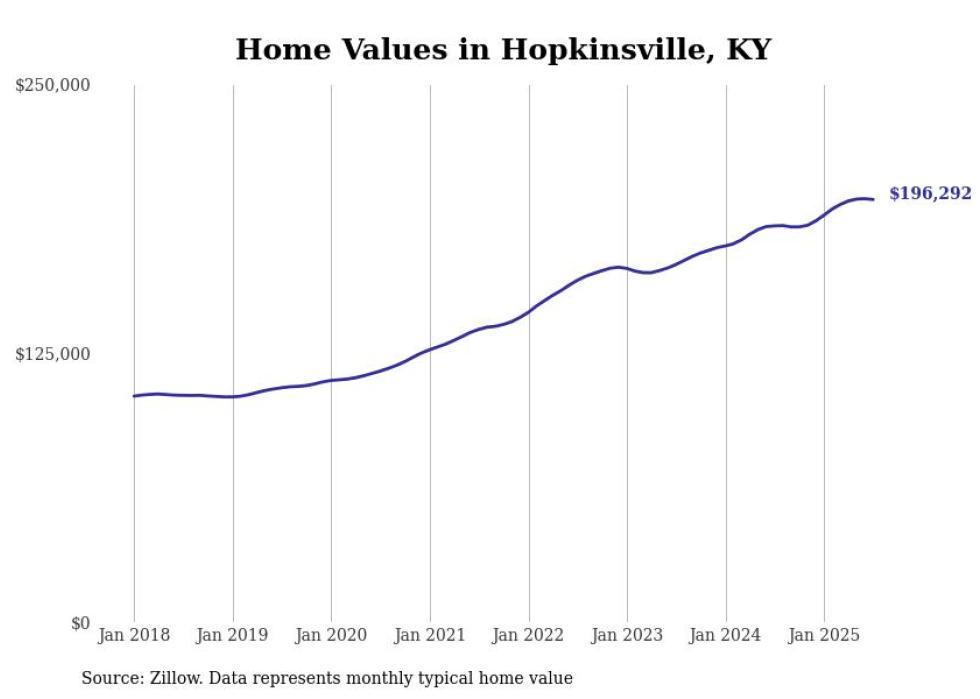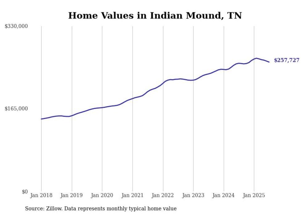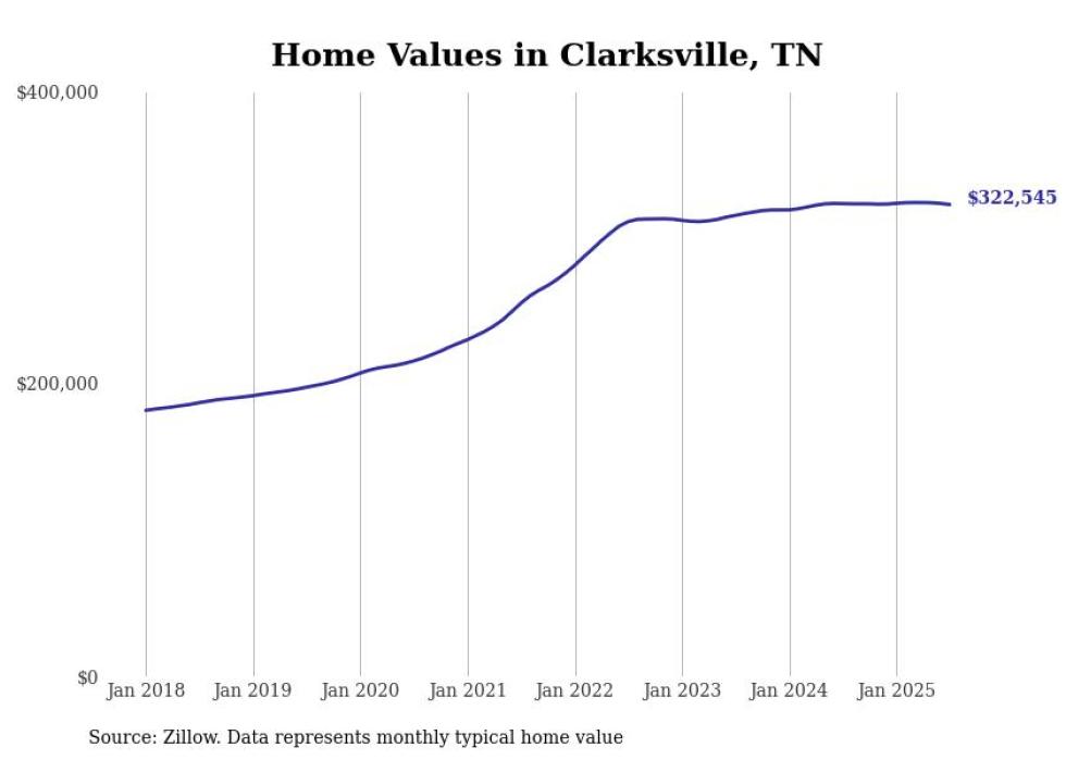 Stacker compiled a list of cities with the most expensive homes in the Clarksville metro area using data from Zillow. Charts show the monthly typical home value since January 2018. All 20 cities and towns with data available were included in the list.