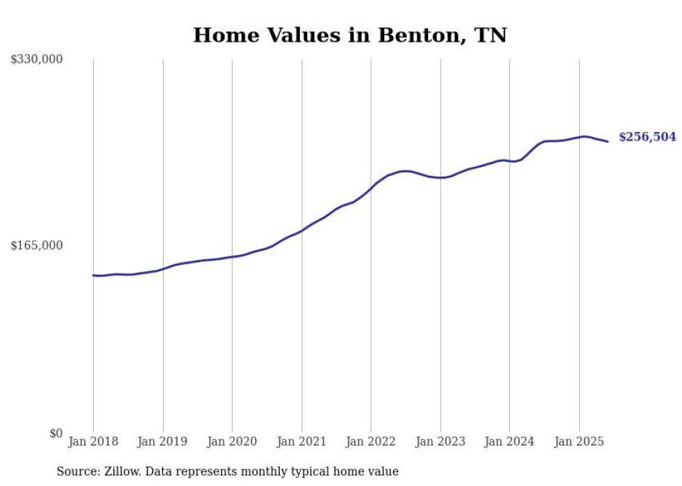 Cities with the fastest-growing home prices in the Cleveland, Tennessee metro area
