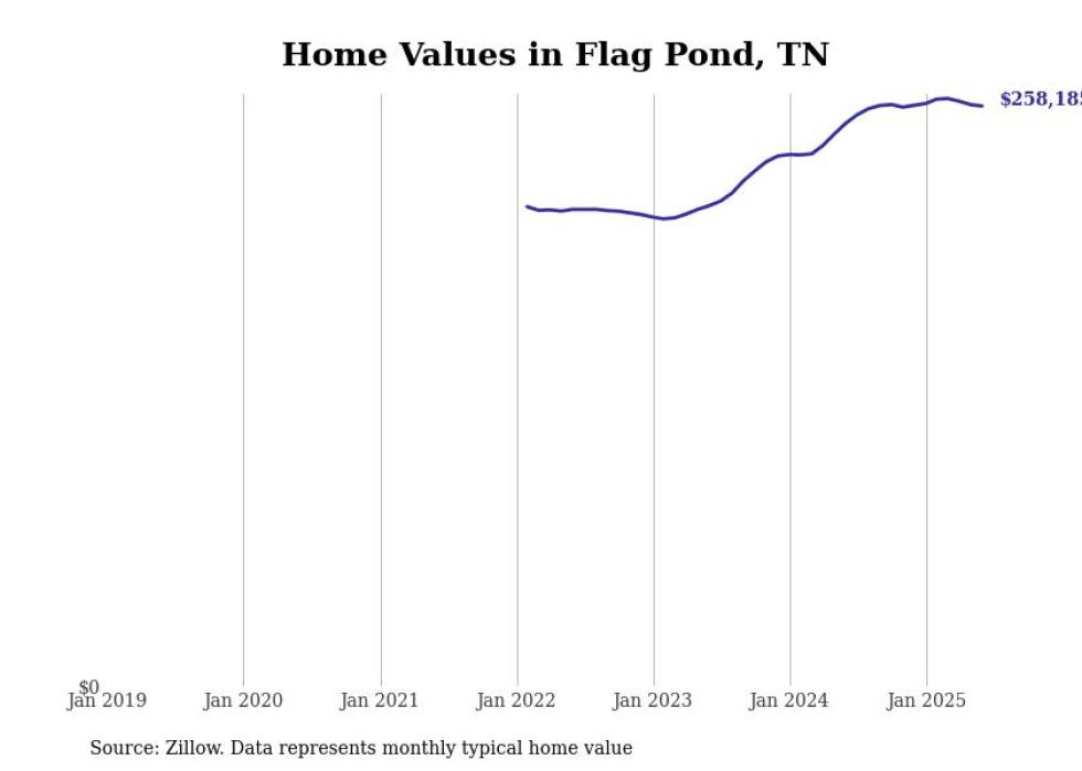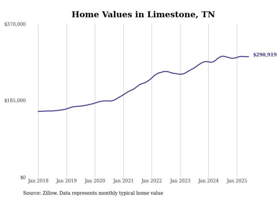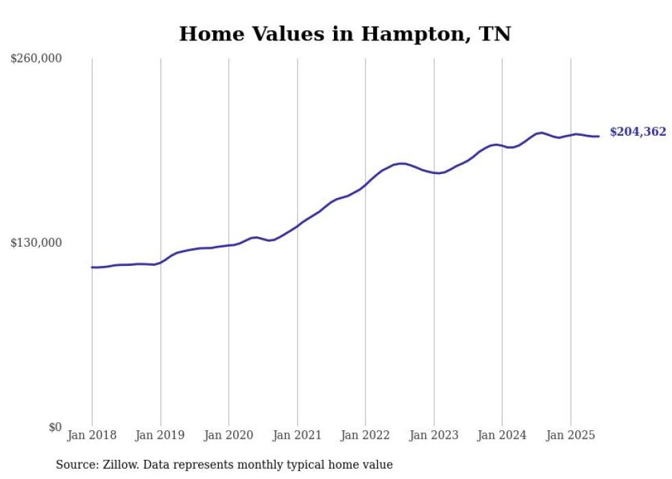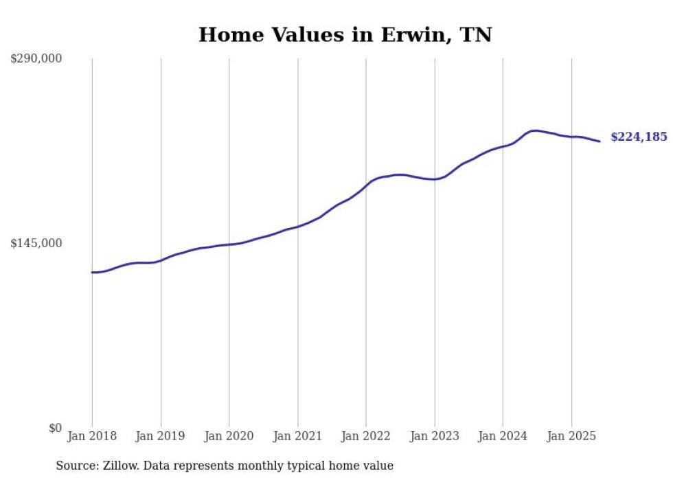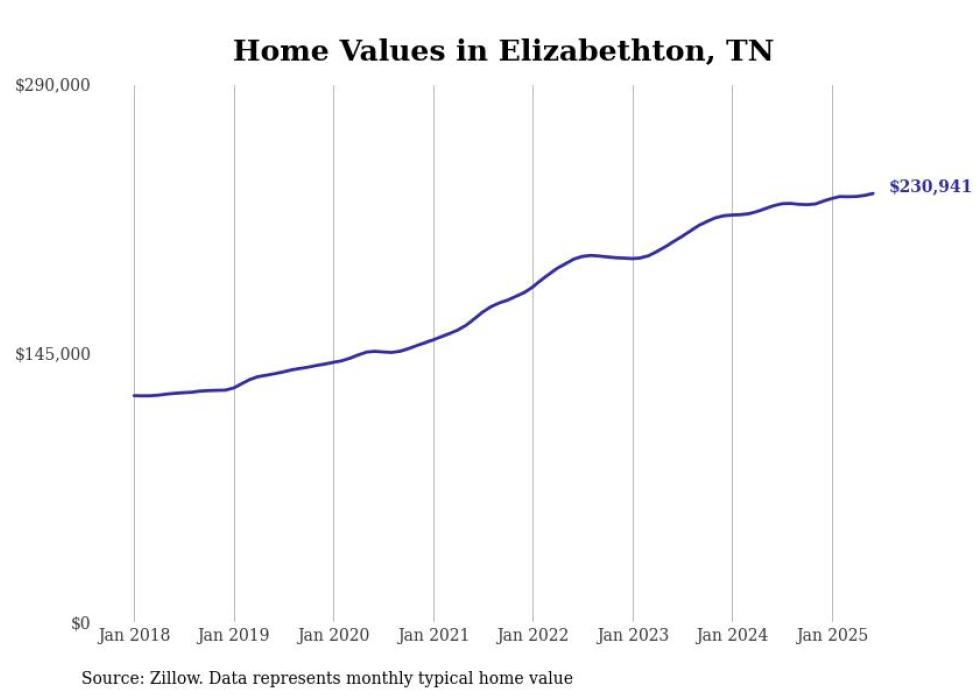 Stacker compiled a list of cities with the most expensive homes in the Johnson City, TN metro area using data from Zillow. Charts show the monthly typical home value since January 2018.