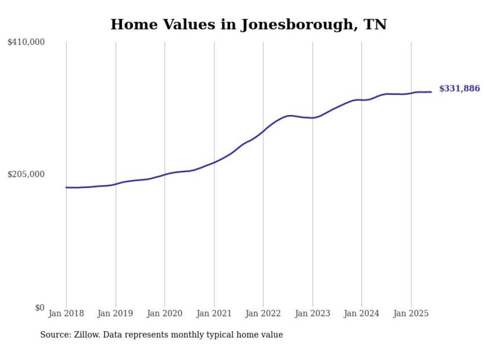 Cities with the fastest-growing home prices in the Johnson City metro area