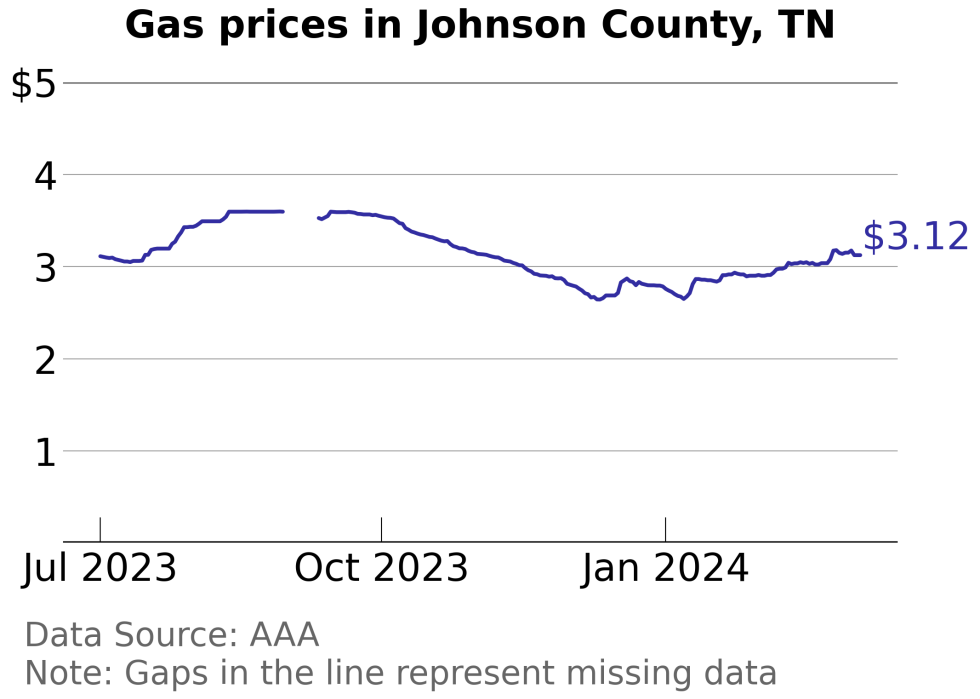 Johnson County, Tennessee gas price trends