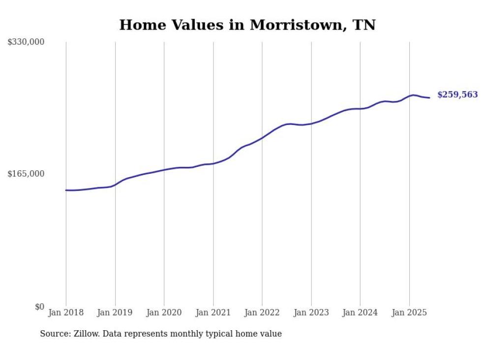 Stacker compiled a list of cities with the most expensive homes in the Morristown, TN metro area using data from Zillow. Charts show the monthly typical home value since January 2018.