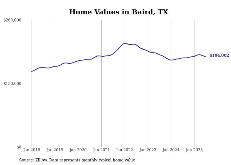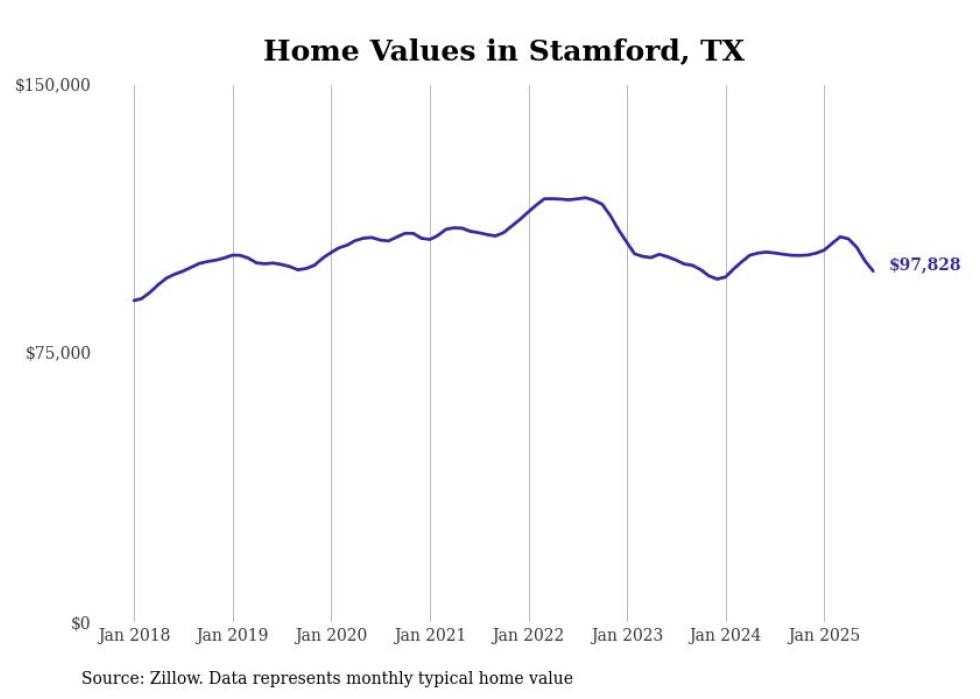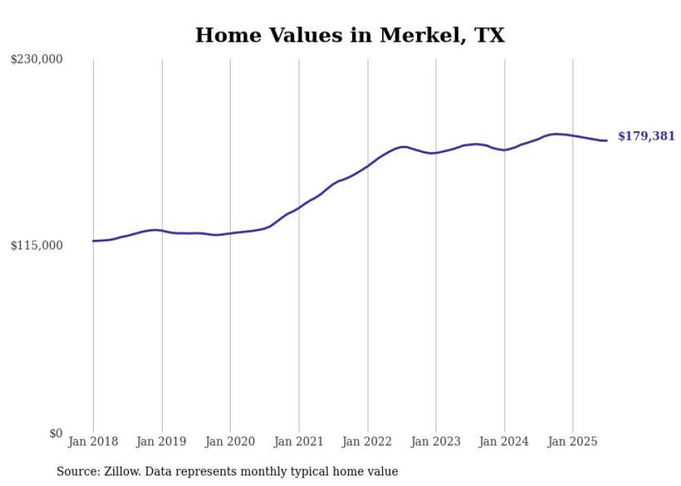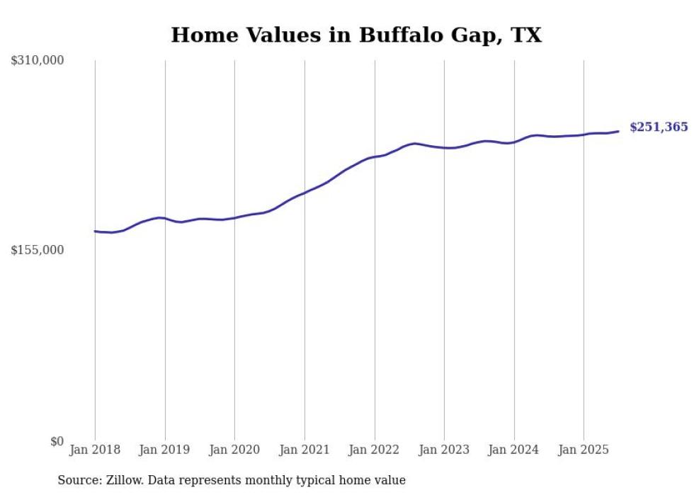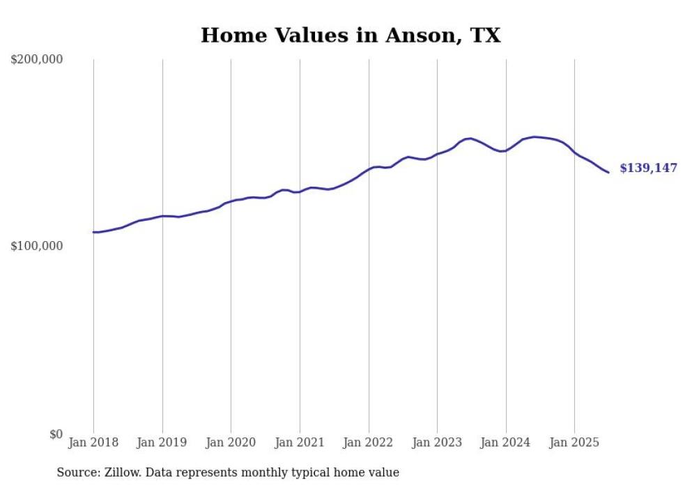 Stacker compiled a list of cities with the most expensive homes in the Abilene metro area using data from Zillow. Charts show the monthly typical home value since January 2018. All 15 cities and towns with data available were included in the list.