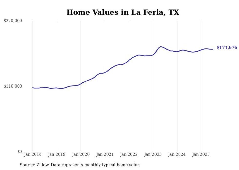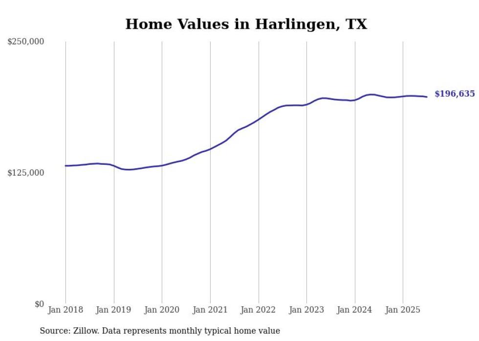 Stacker compiled a list of cities with the most expensive homes in the Brownsville metro area using data from Zillow. Charts show the monthly typical home value since January 2018. All 12 cities and towns with data available were included in the list.