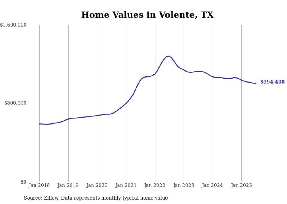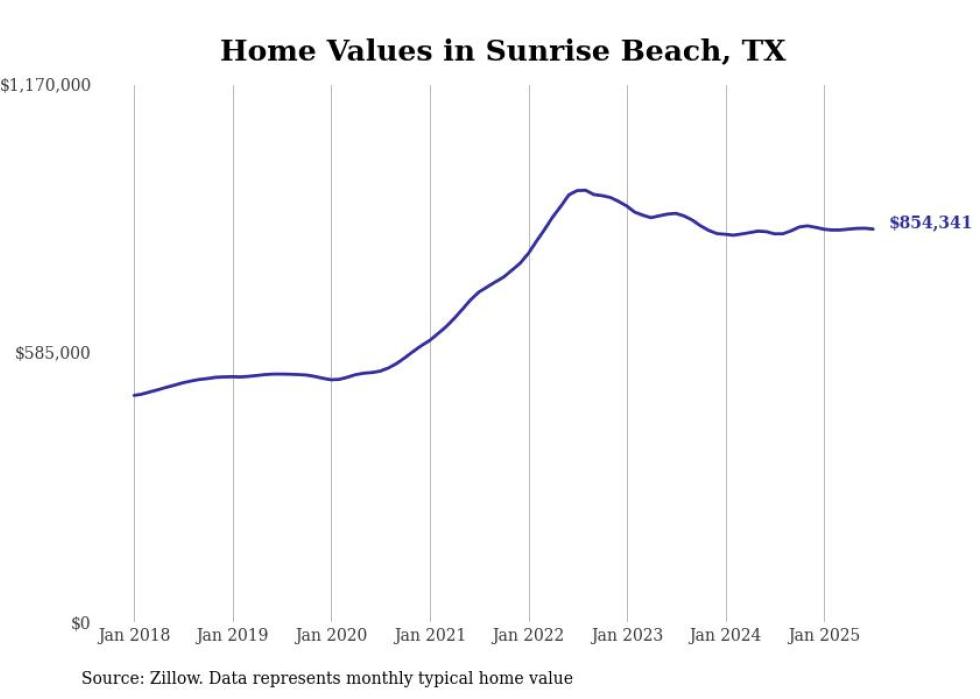Stacker compiled a list of cities with the most expensive homes in Texas using data from Zillow. Cities are ranked by the Zillow Home Values Index for all homes as of July 2025. The charts in this story were created automatically using Matplotlib.