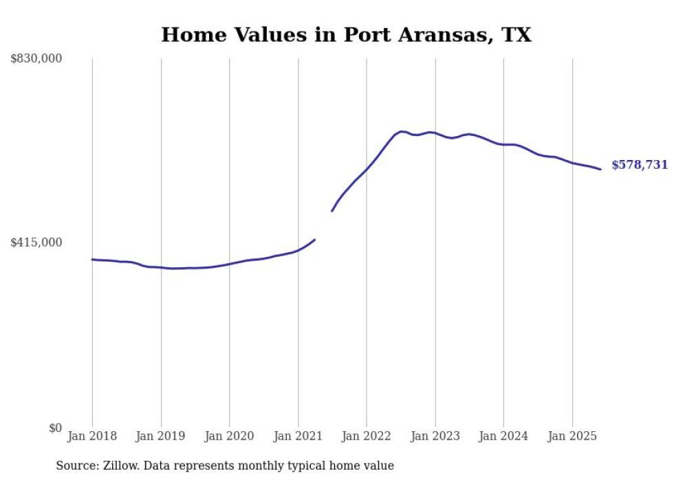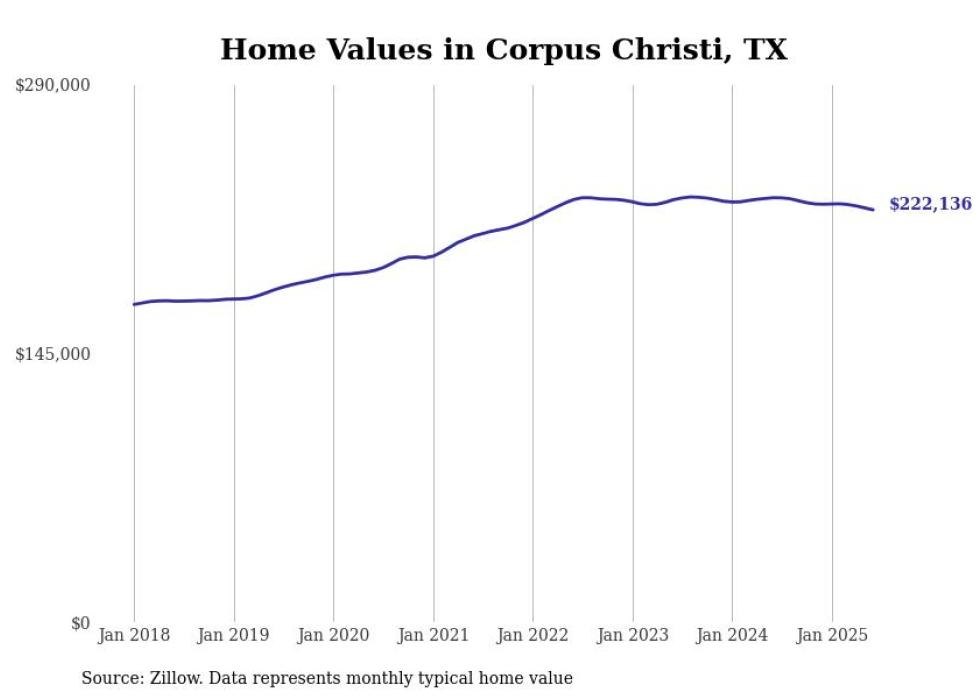 Stacker compiled a list of cities with the most expensive homes in the Corpus Christi, TX metro area using data from Zillow. Charts show the monthly typical home value since January 2018.