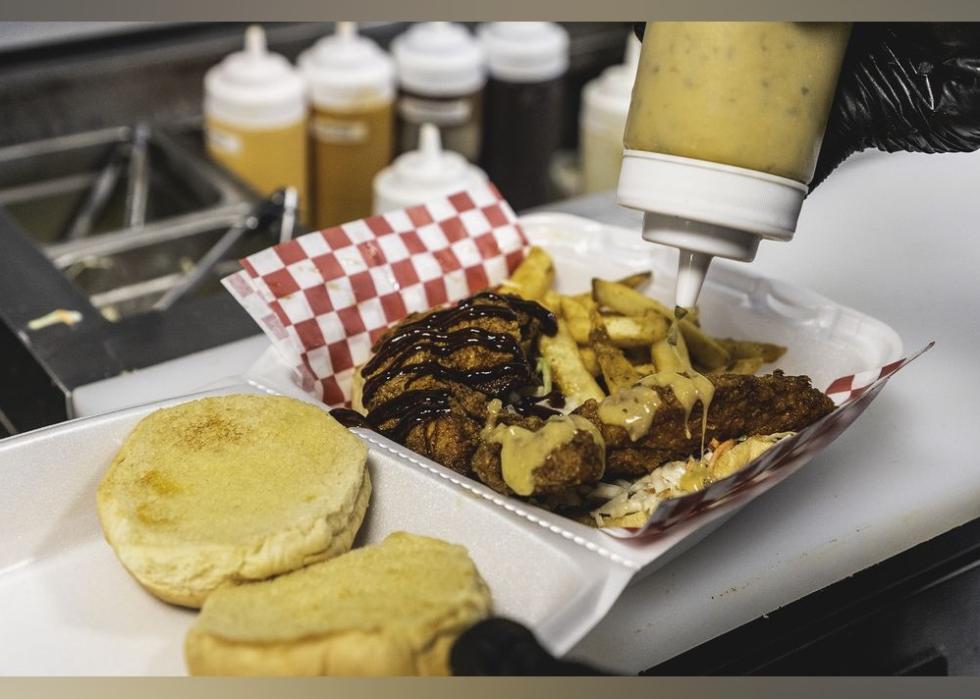 Buffalo wings are the first to come to mind. This popular chicken wing style was born (where else?) in the city of Buffalo, New York. The prevalent story is that Italian-born Frank and Teressa Bellissimo first served these sauce-smothered avian parts to their son in 1964 and eventually in their restaurant, Anchor Bar. But another story says that John Young, a Black Buffalonian, was there serving wings on a busy Jefferson Avenue way before then. Young's wings were served with a mombo sauce that Buffalo councilman James Pitts called the "lip-smacking, liver-quivering sauce (that) titillated our taste buds down to our toes."