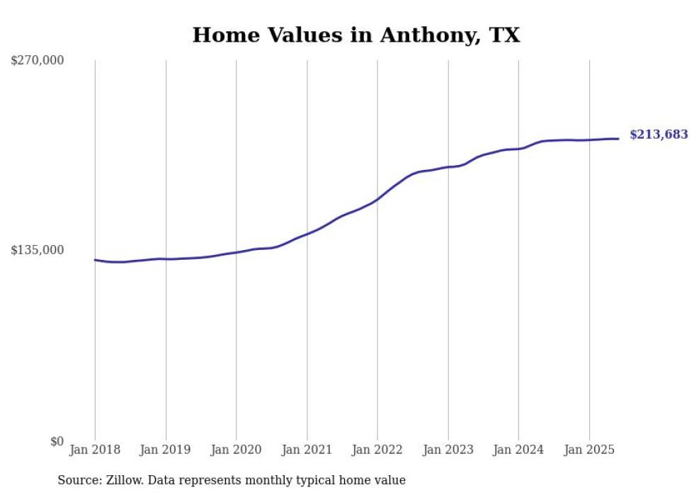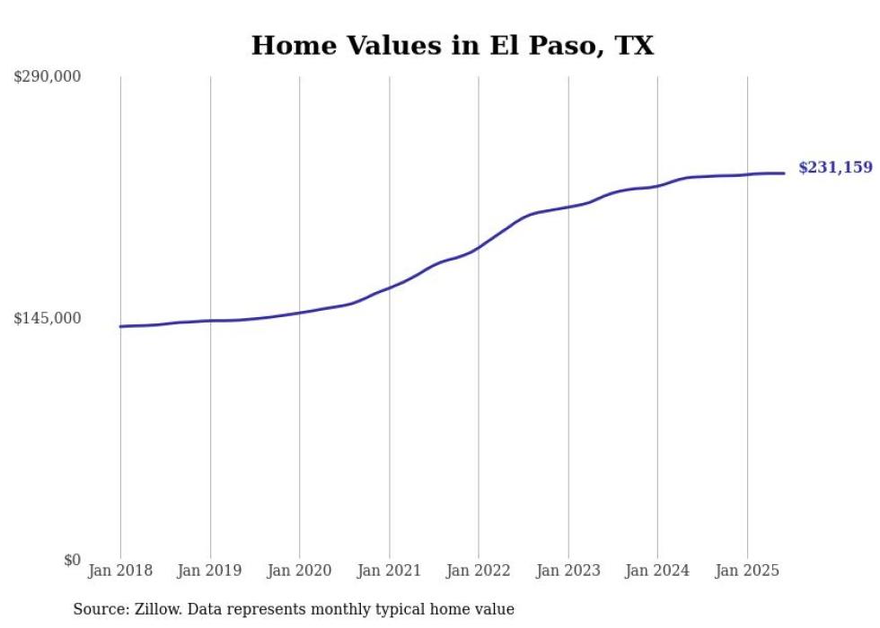 Stacker compiled a list of cities with the most expensive homes in the El Paso, TX metro area using data from Zillow. Charts show the monthly typical home value since January 2018.
