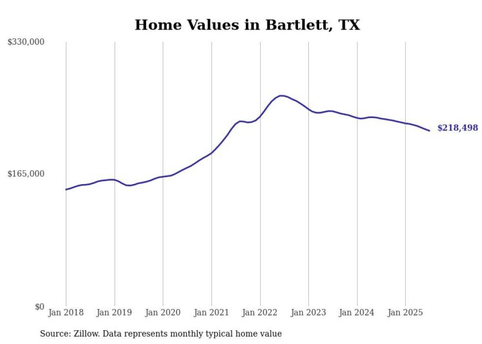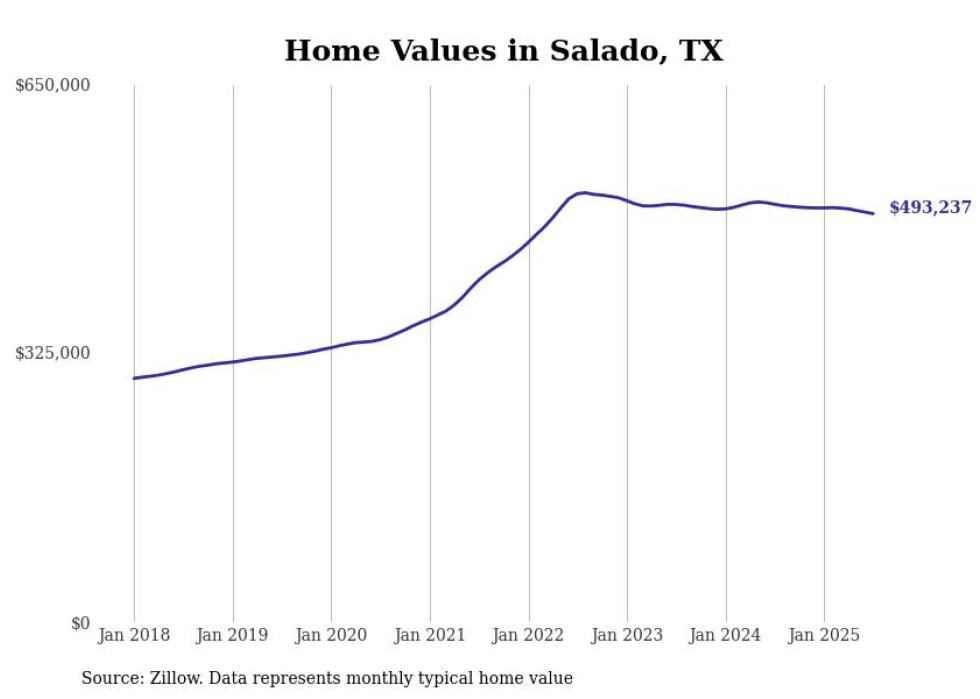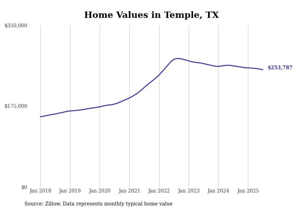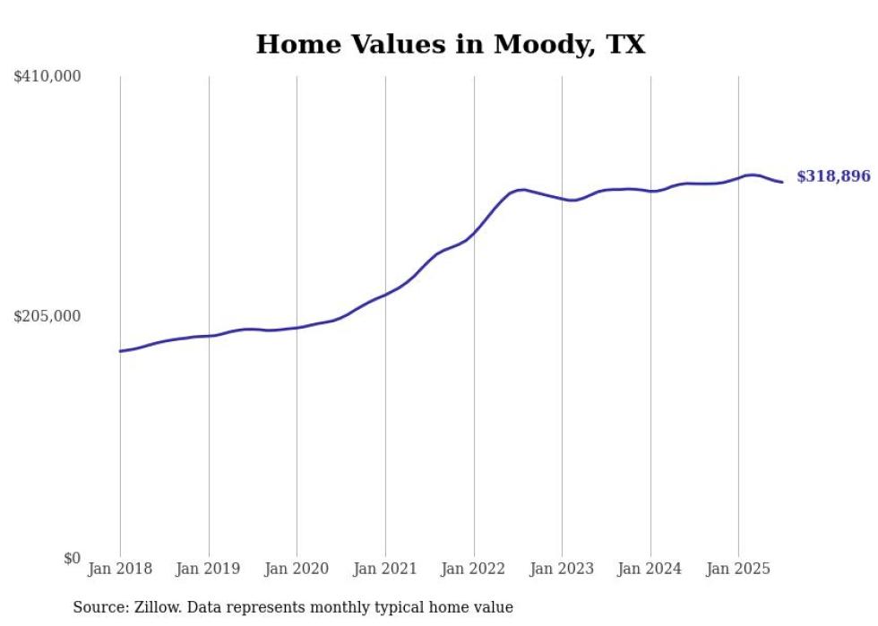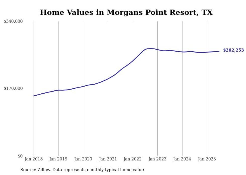 Stacker compiled a list of cities with the most expensive homes in the Killeen metro area using data from Zillow. Charts show the monthly typical home value since January 2018. All 24 cities and towns with data available were included in the list.