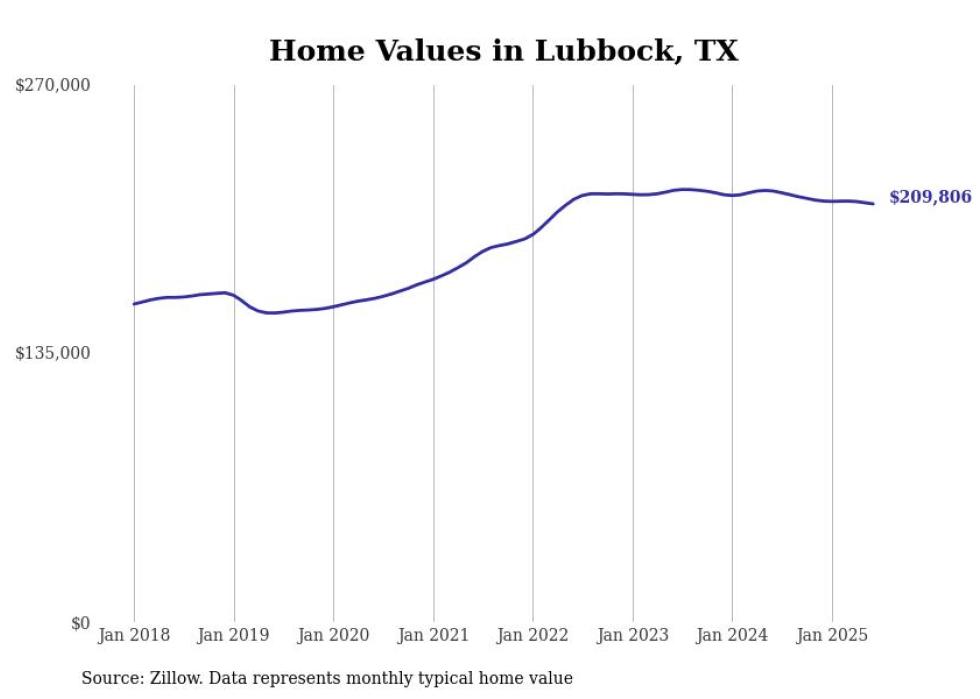 Stacker compiled a list of cities with the most expensive homes in the Lubbock, TX metro area using data from Zillow. Charts show the monthly typical home value since January 2018.