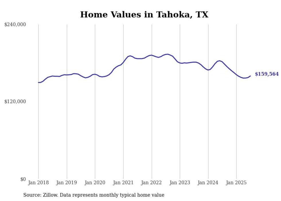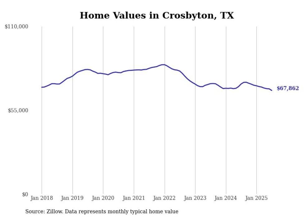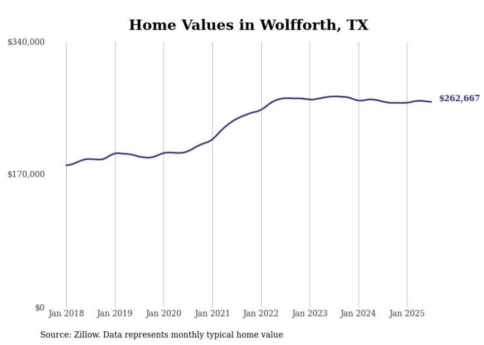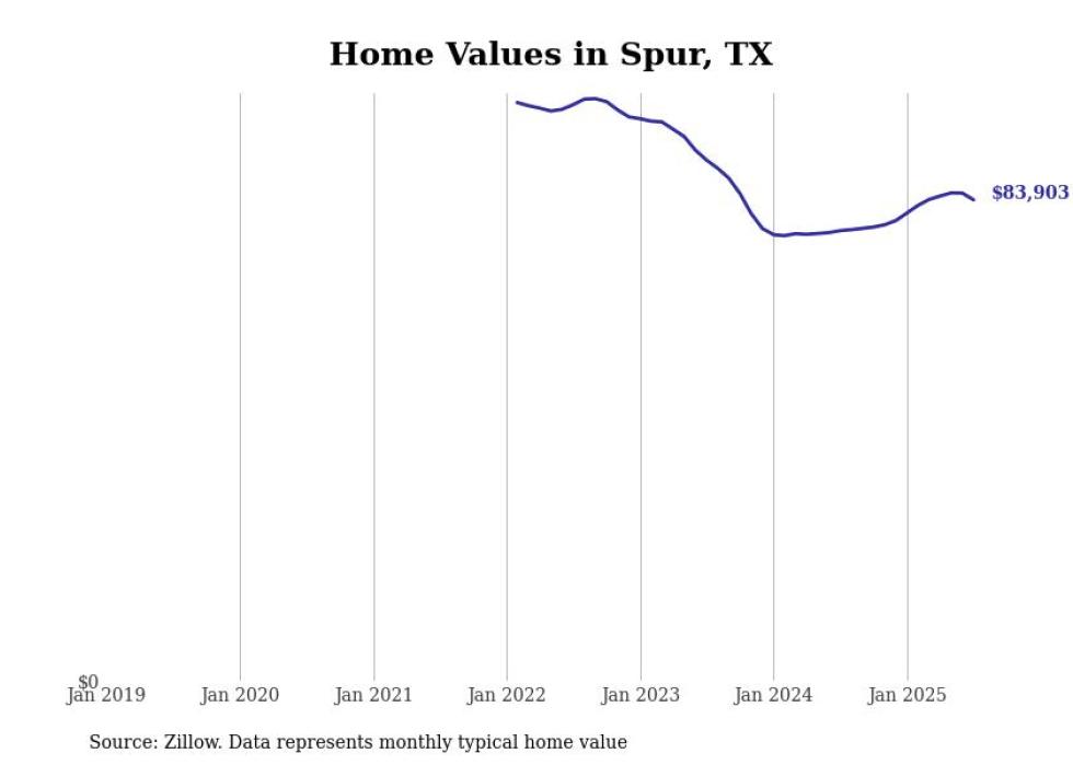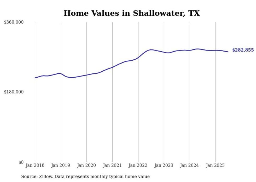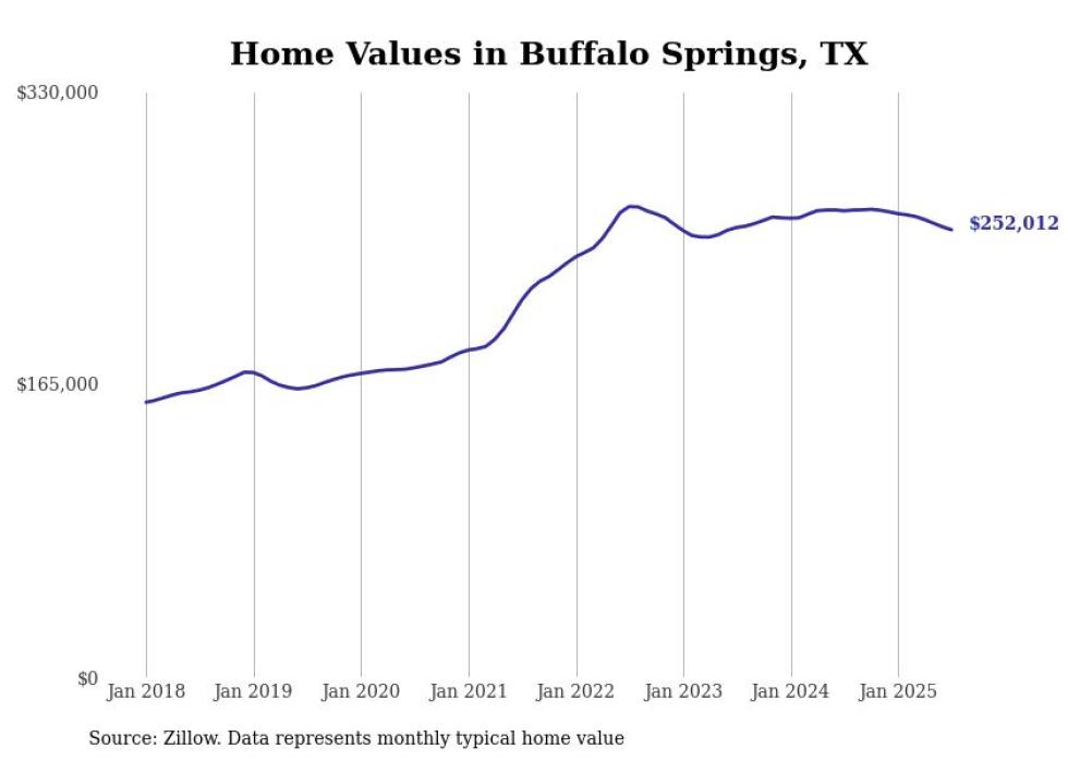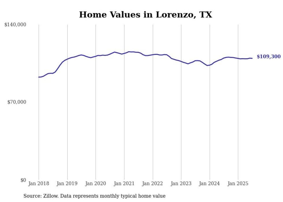 Stacker compiled a list of cities with the most expensive homes in the Lubbock metro area using data from Zillow. Charts show the monthly typical home value since January 2018. All 15 cities and towns with data available were included in the list.