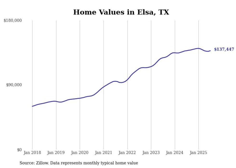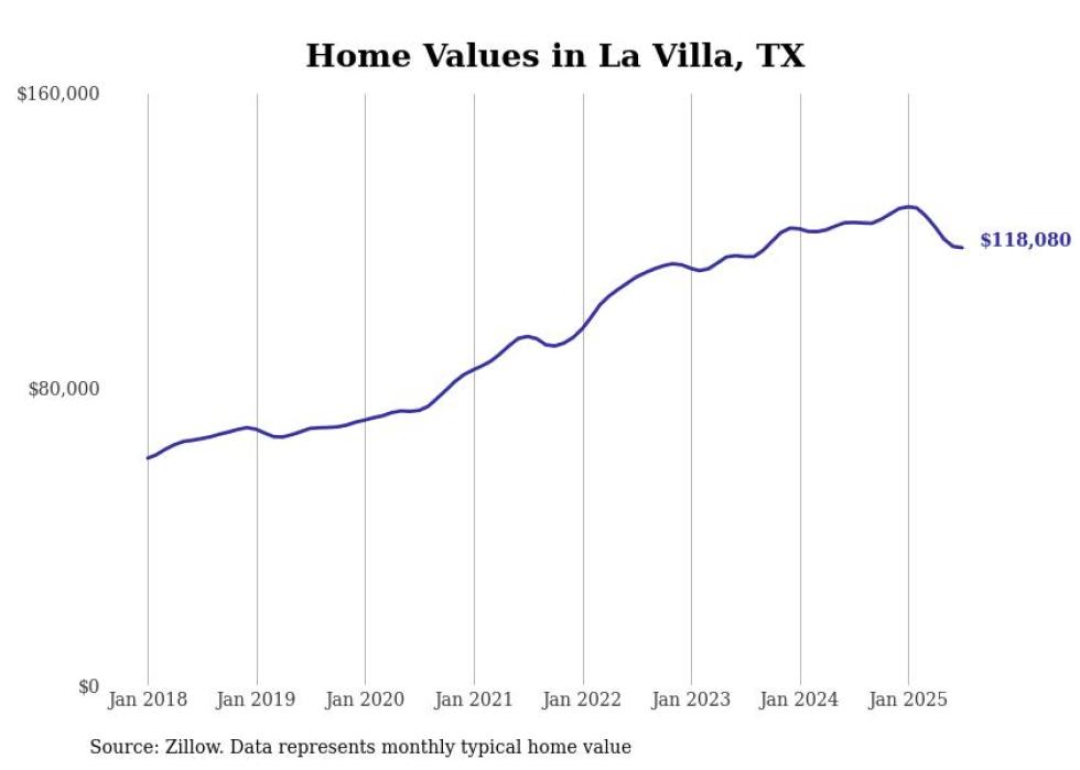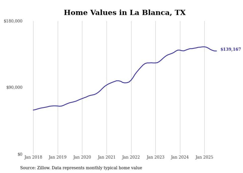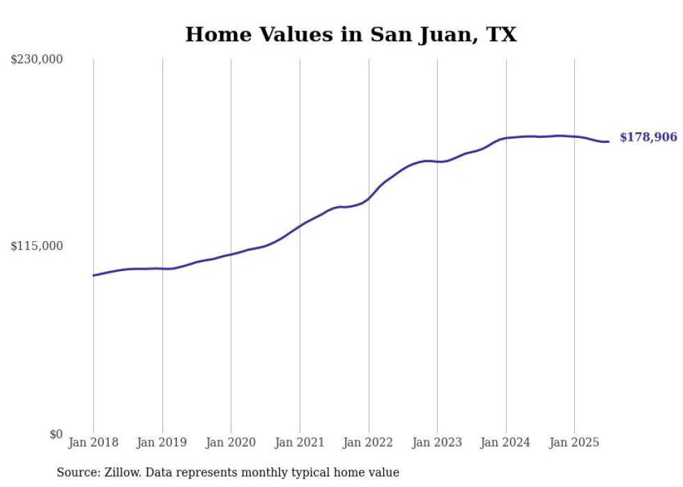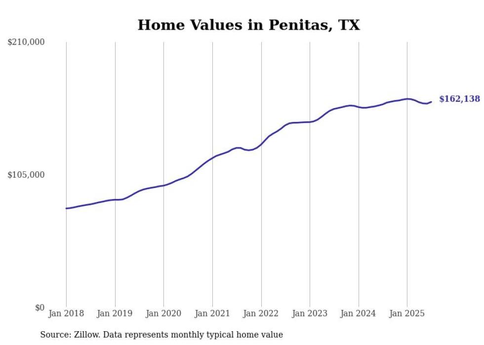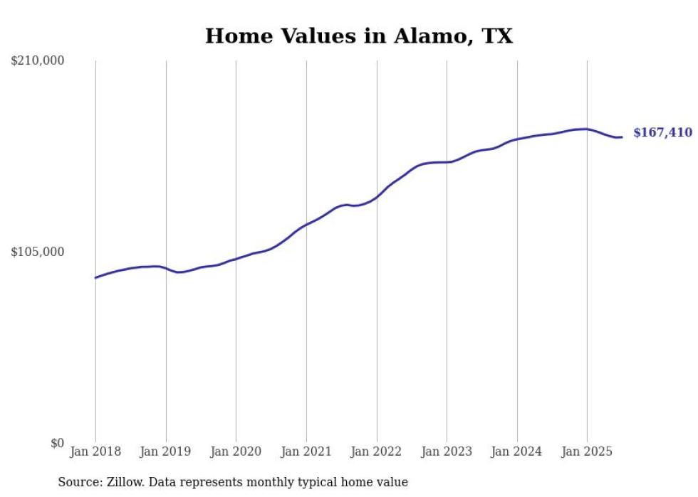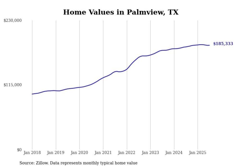 Stacker compiled a list of cities with the most expensive homes in the McAllen metro area using data from Zillow. Charts show the monthly typical home value since January 2018. Data was available for 31 cities and towns.