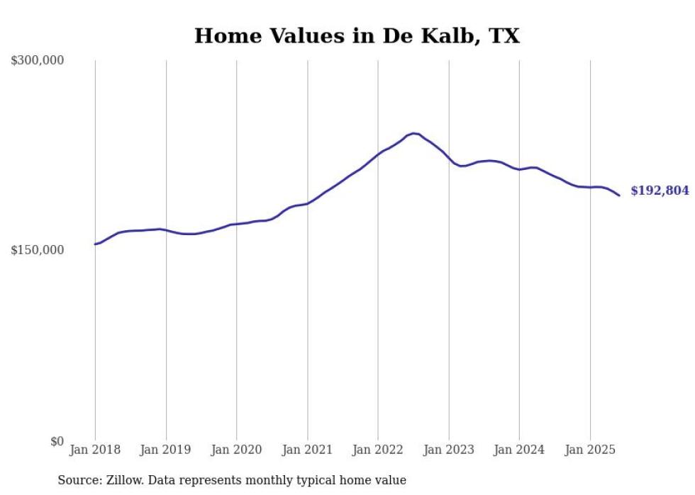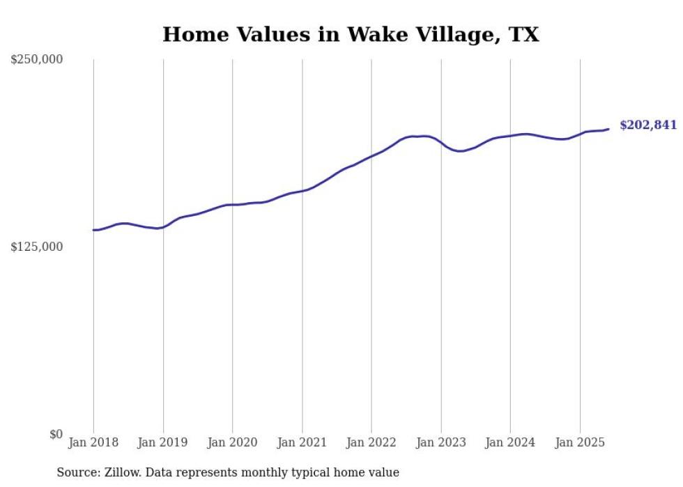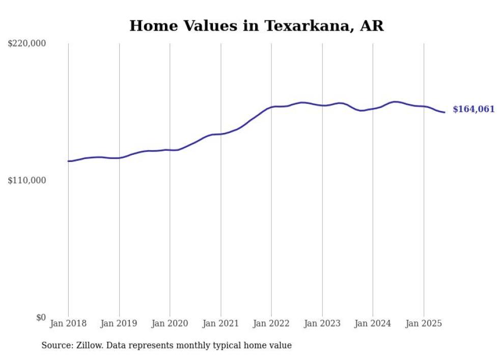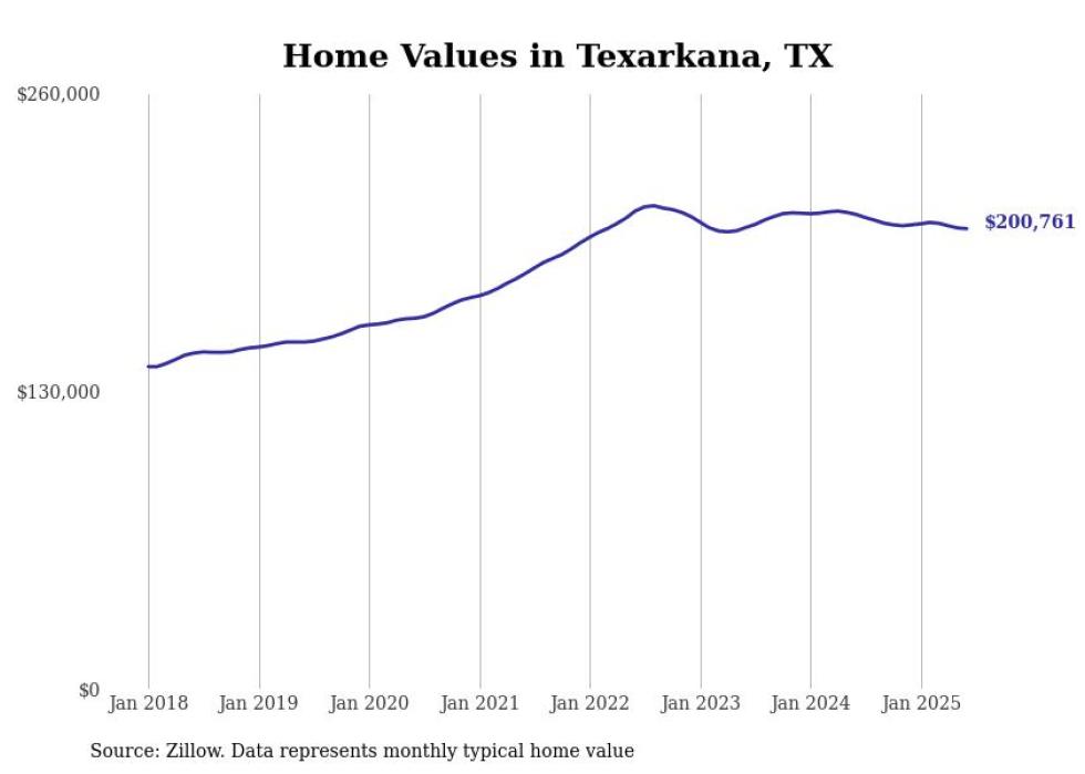 Stacker compiled a list of cities with the most expensive homes in the Texarkana, TX-AR metro area using data from Zillow. Charts show the monthly typical home value since January 2018.