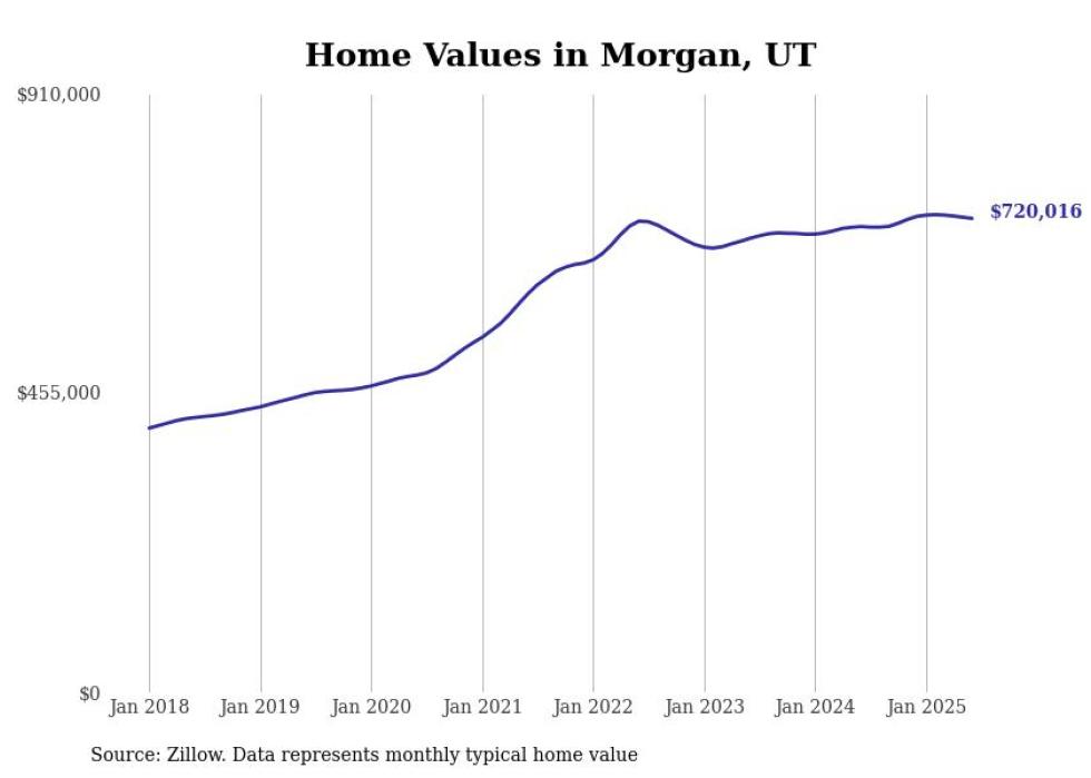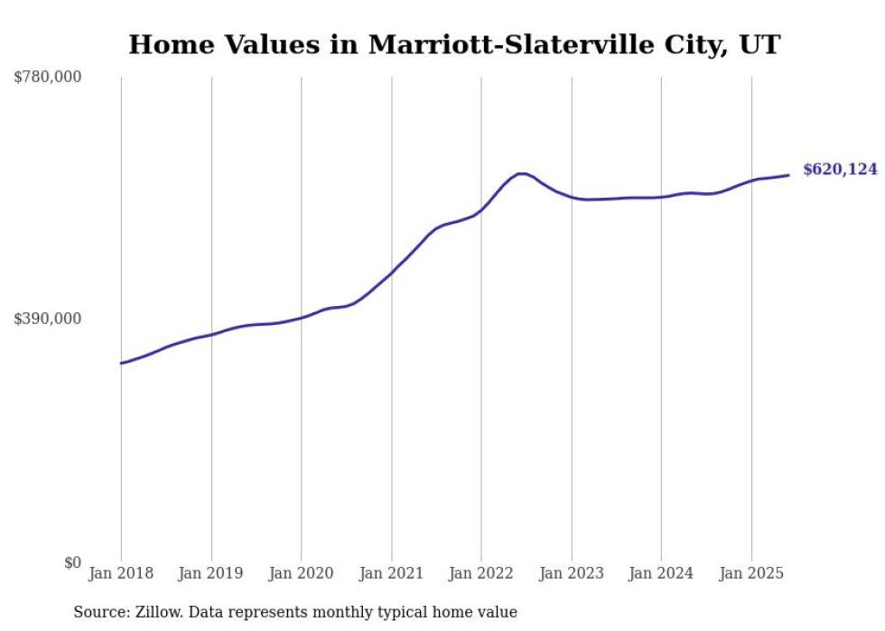 Stacker compiled a list of cities with the most expensive homes in the Ogden-Clearfield, UT metro area using data from Zillow. Charts show the monthly typical home value since January 2018.