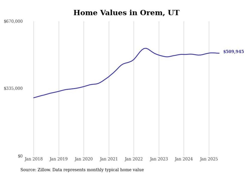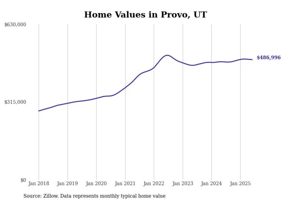 Stacker compiled a list of cities with the most expensive homes in the Provo-Orem, UT metro area using data from Zillow. Charts show the monthly typical home value since January 2018.